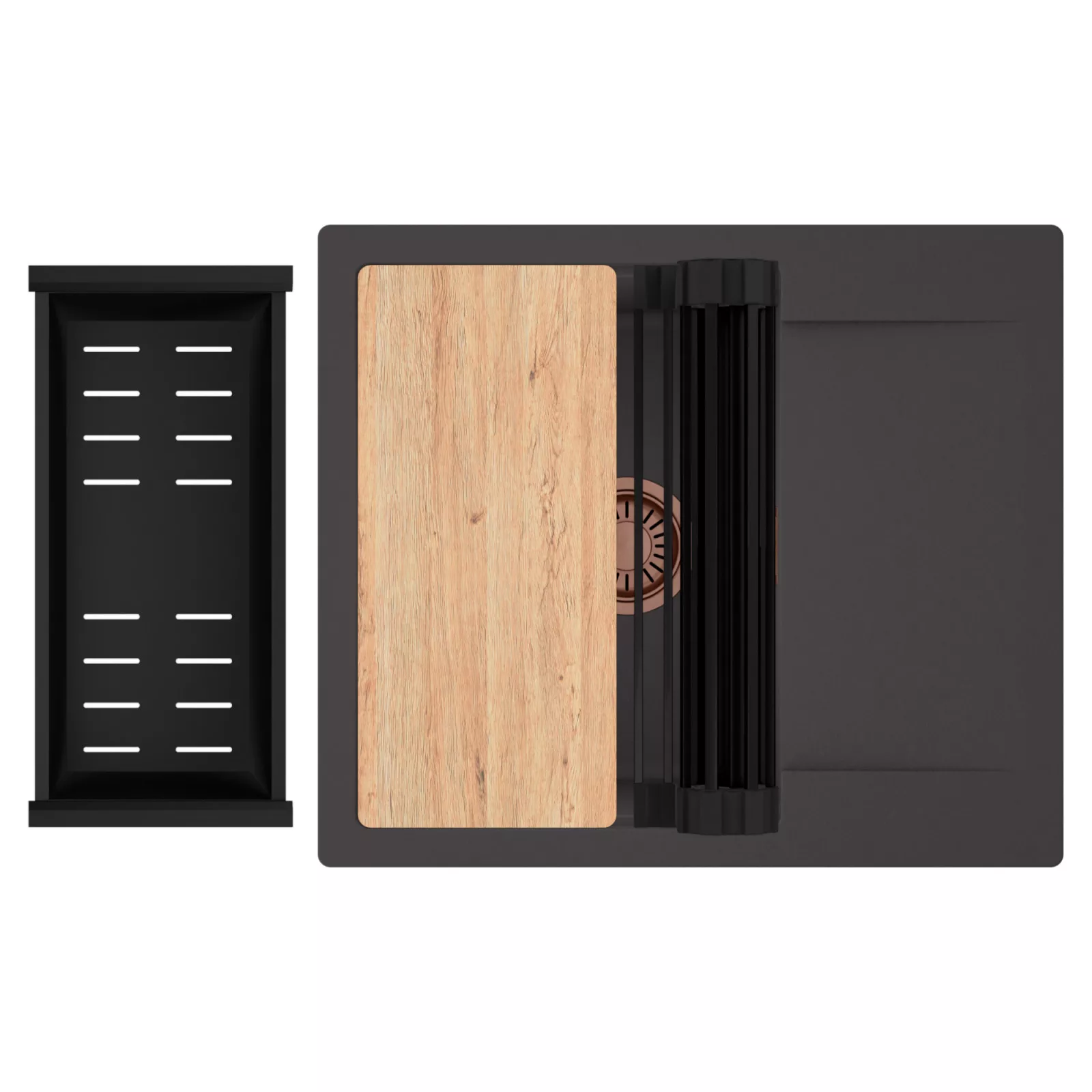 HD Onyx 58 egymedencés mosogatótálca szett, vágódeszkával, csepegtetőráccsal és kosárral, matt antracit