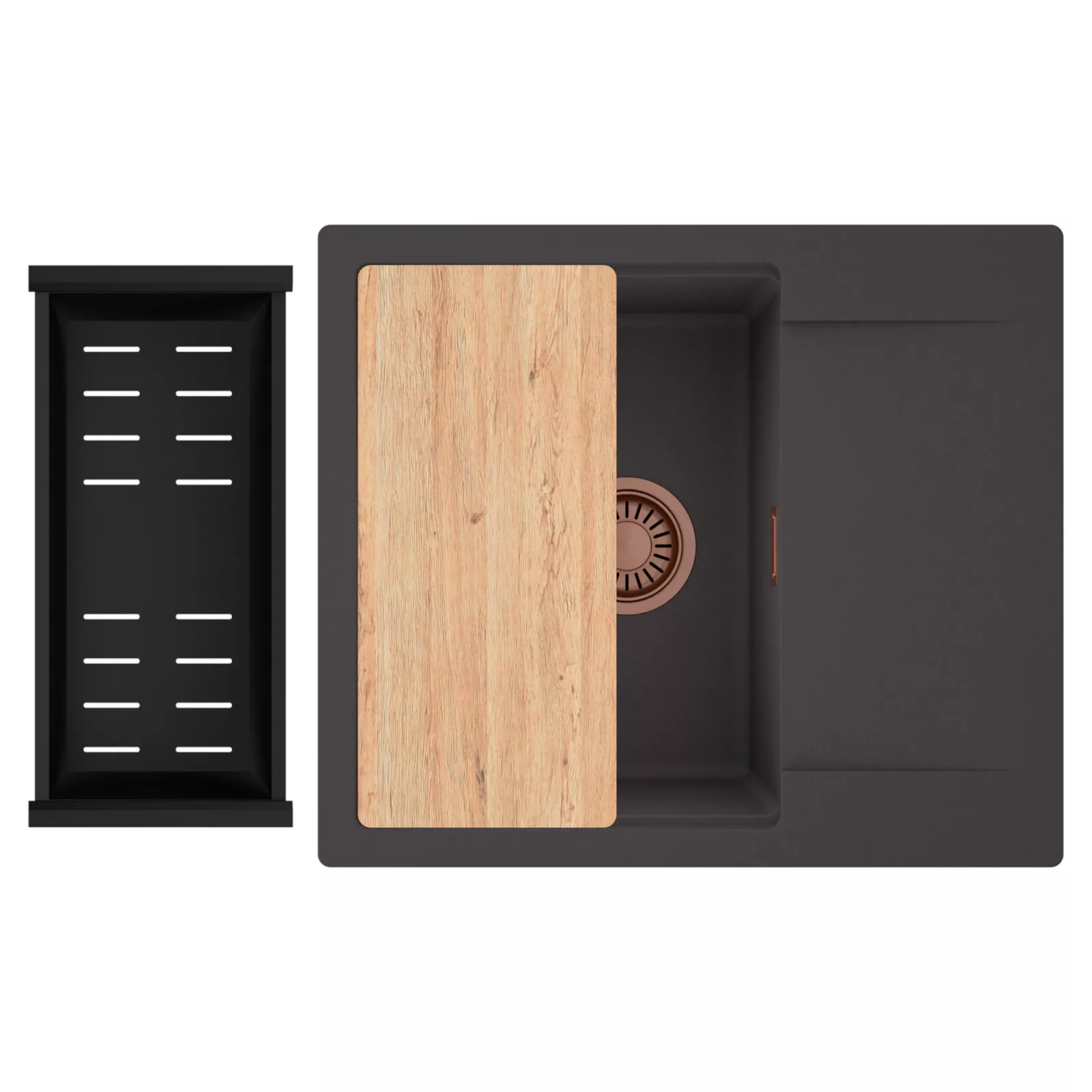 HD Onyx 58 egymedencés mosogatótálca szett, vágódeszkával és csepegtetőkosárral, matt antracit