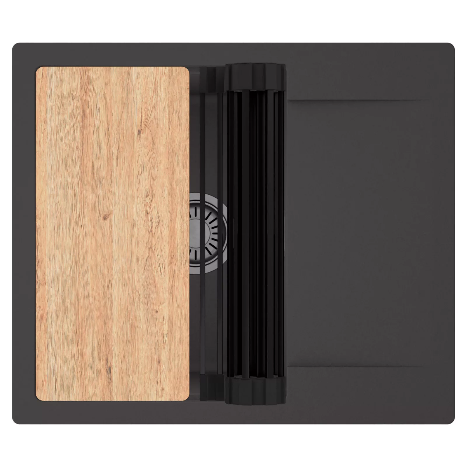 HD Onyx 58 egymedencés mosogatótálca szett, vágódeszkával és csepegtetőráccsal, matt antracit