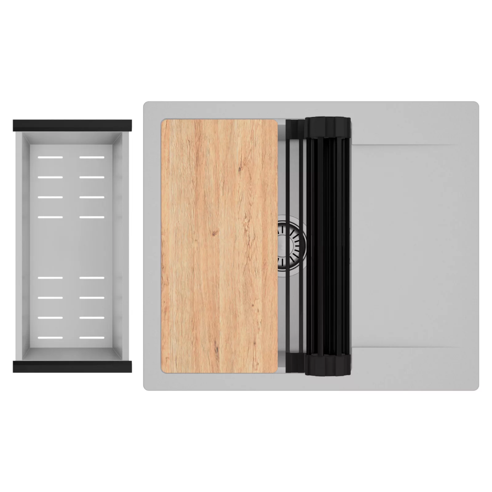 A HomeDepo SmartEdge Többfunkciós Peremrendszer egy intelligensen kialakított peremmegoldás, amely a mosogatót kompakt, mégis teljes értékű konyhai térré alakítja a mindennapok során. A speciális peremkialakítás lehetővé teszi a vágódeszka, a feltekerhető csepegtető rács, a gyümölcsmosó és a csepegtető kosár stabil, biztonságos és kényelmes elhelyezését közvetlenül a mosogató speciális belső peremén. A kiegészítők síkban csúsztathatók és szabadon kombinálhatók, így extra munkafelületet nyersz anélkül, hogy helyet foglalnál a konyhapulton – a mosogató valódi többfunkciós központtá válik.