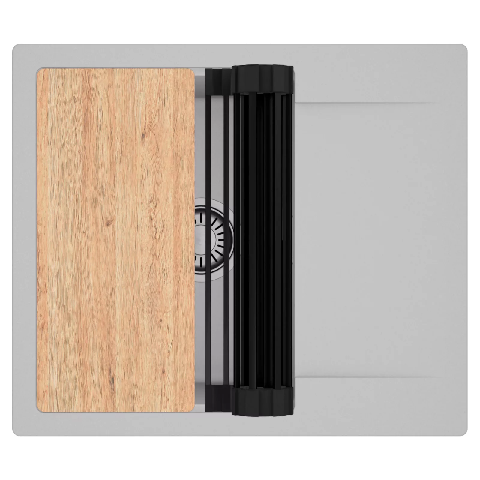HD Onyx Grey 58 egymedencés mosogatótálca szett, vágódeszkával és csepegtetőráccsal, alpesi szürke