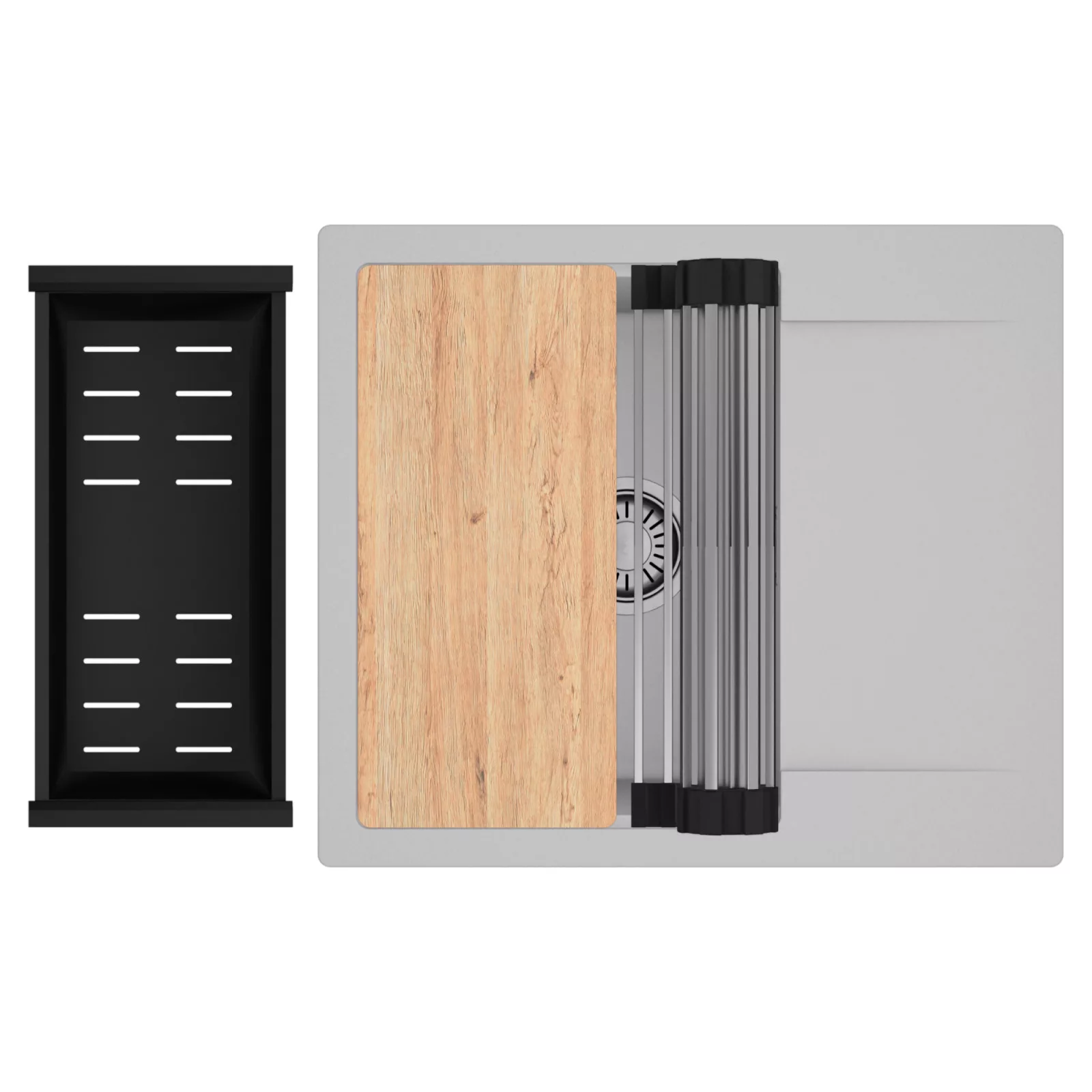 A HomeDepo SmartEdge Többfunkciós Peremrendszer egy intelligensen kialakított peremmegoldás, amely a mosogatót kompakt, mégis teljes értékű konyhai térré alakítja a mindennapok során. A speciális peremkialakítás lehetővé teszi a vágódeszka, a feltekerhető csepegtető rács, a gyümölcsmosó és a csepegtető kosár stabil, biztonságos és kényelmes elhelyezését közvetlenül a mosogató speciális belső peremén. A kiegészítők síkban csúsztathatók és szabadon kombinálhatók, így extra munkafelületet nyersz anélkül, hogy helyet foglalnál a konyhapulton – a mosogató valódi többfunkciós központtá válik.