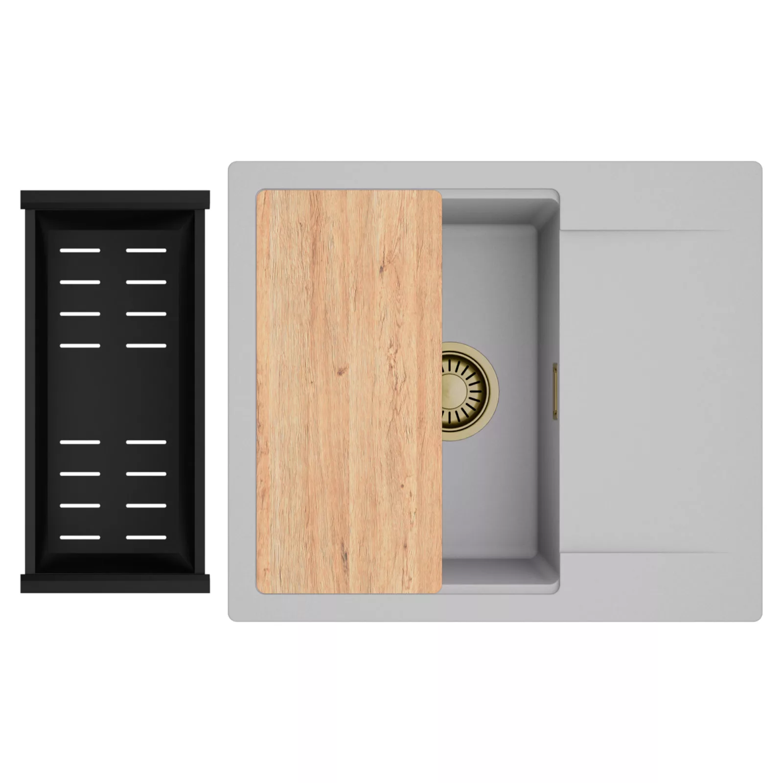 HD Onyx Grey 58 egymedencés mosogatótálca szett, vágódeszkával és csepegtetőkosárral, alpesi szürke