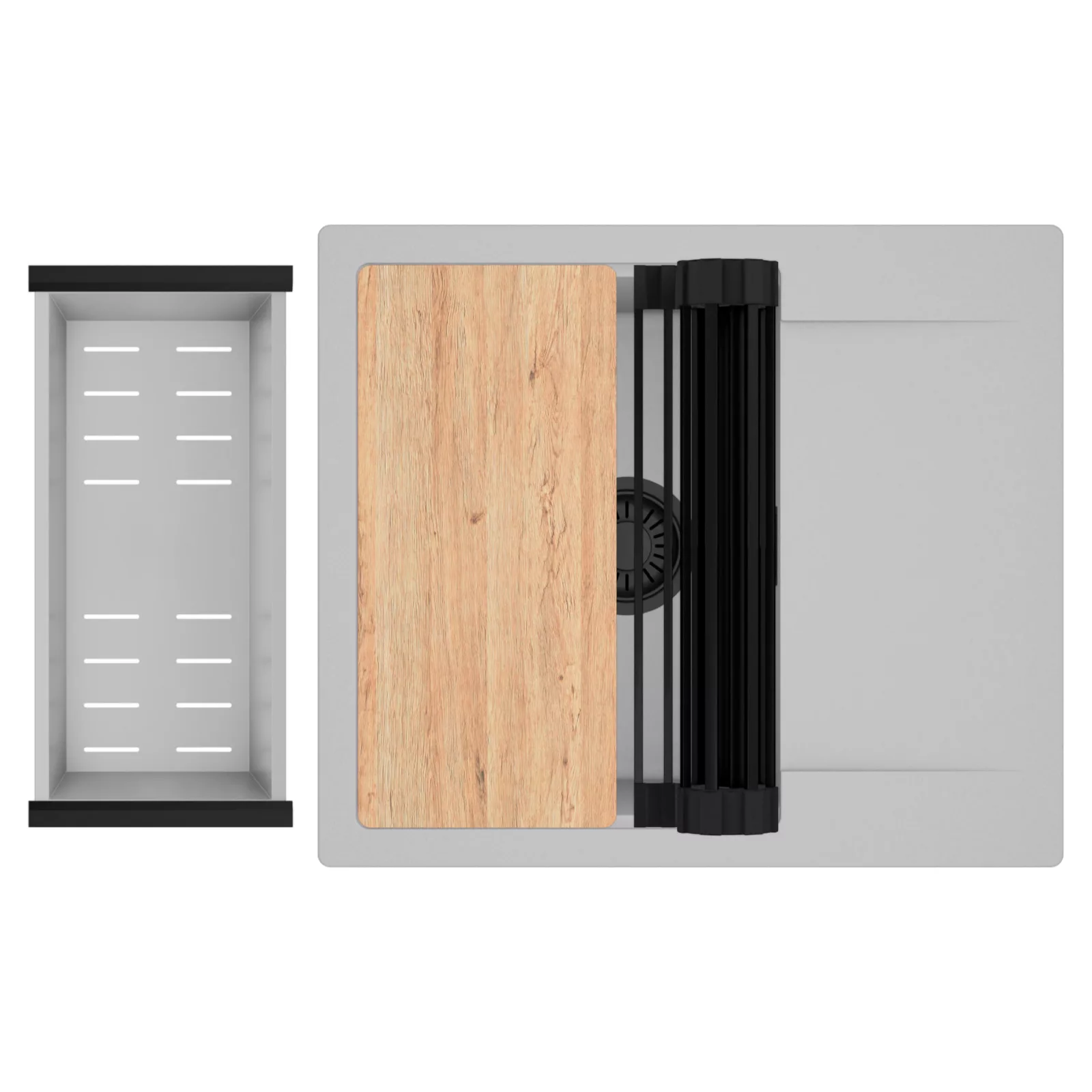 A HomeDepo SmartEdge Többfunkciós Peremrendszer egy intelligensen kialakított peremmegoldás, amely a mosogatót kompakt, mégis teljes értékű konyhai térré alakítja a mindennapok során. A speciális peremkialakítás lehetővé teszi a vágódeszka, a feltekerhető csepegtető rács, a gyümölcsmosó és a csepegtető kosár stabil, biztonságos és kényelmes elhelyezését közvetlenül a mosogató speciális belső peremén. A kiegészítők síkban csúsztathatók és szabadon kombinálhatók, így extra munkafelületet nyersz anélkül, hogy helyet foglalnál a konyhapulton – a mosogató valódi többfunkciós központtá válik.