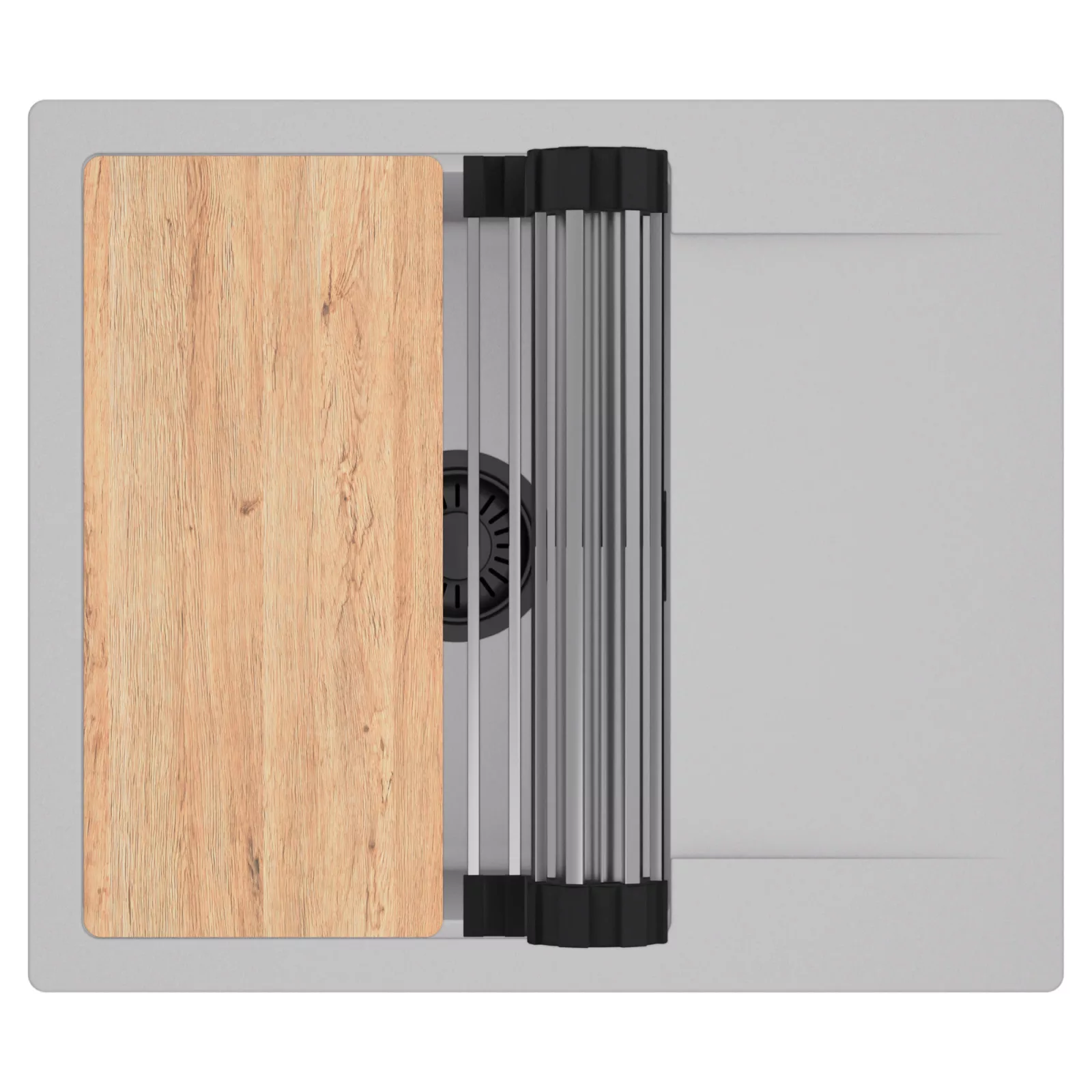 HD Onyx Grey 58 egymedencés mosogatótálca szett, vágódeszkával és csepegtetőráccsal, alpesi szürke