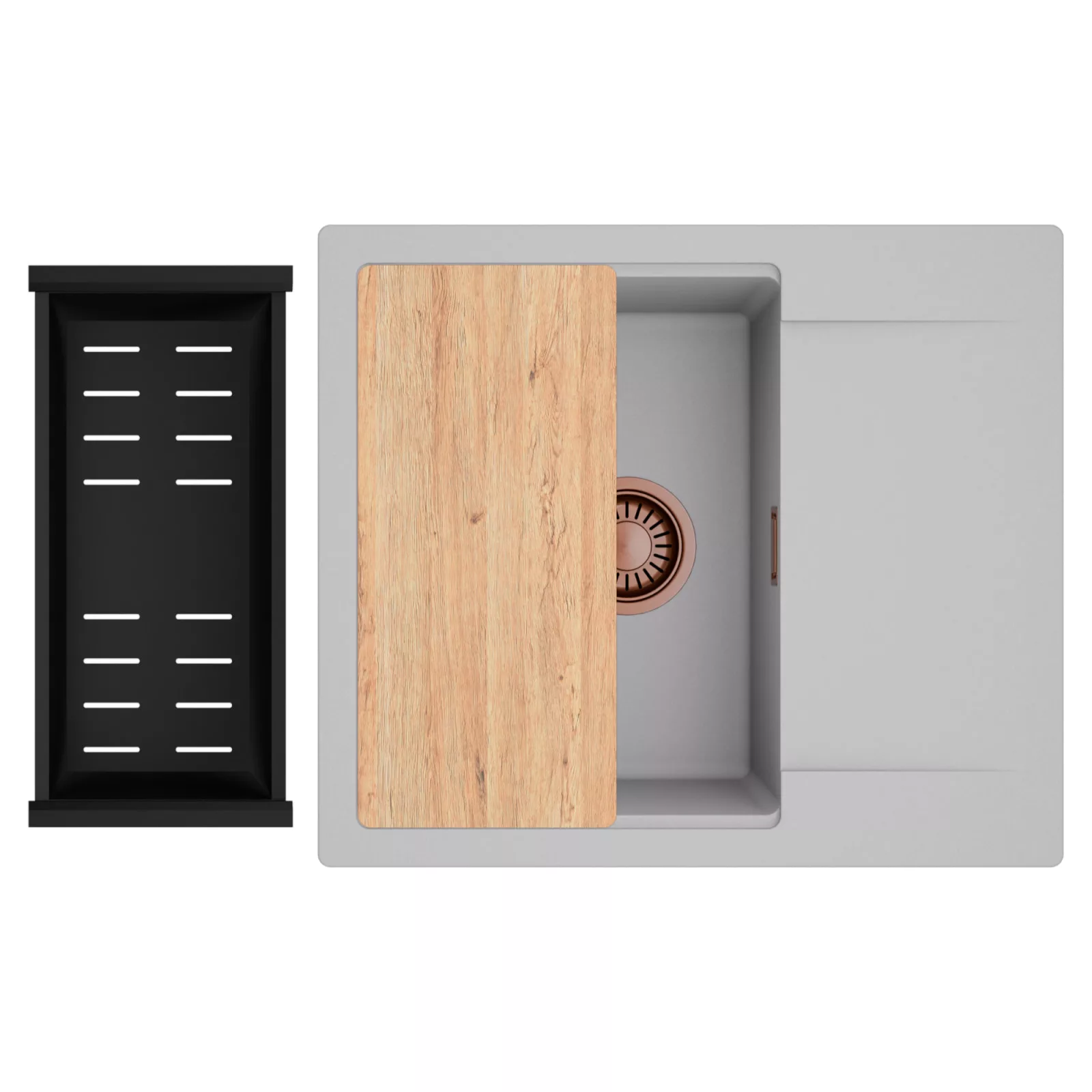 HD Onyx Grey 58 egymedencés mosogatótálca szett, vágódeszkával és csepegtetőkosárral, alpesi szürke