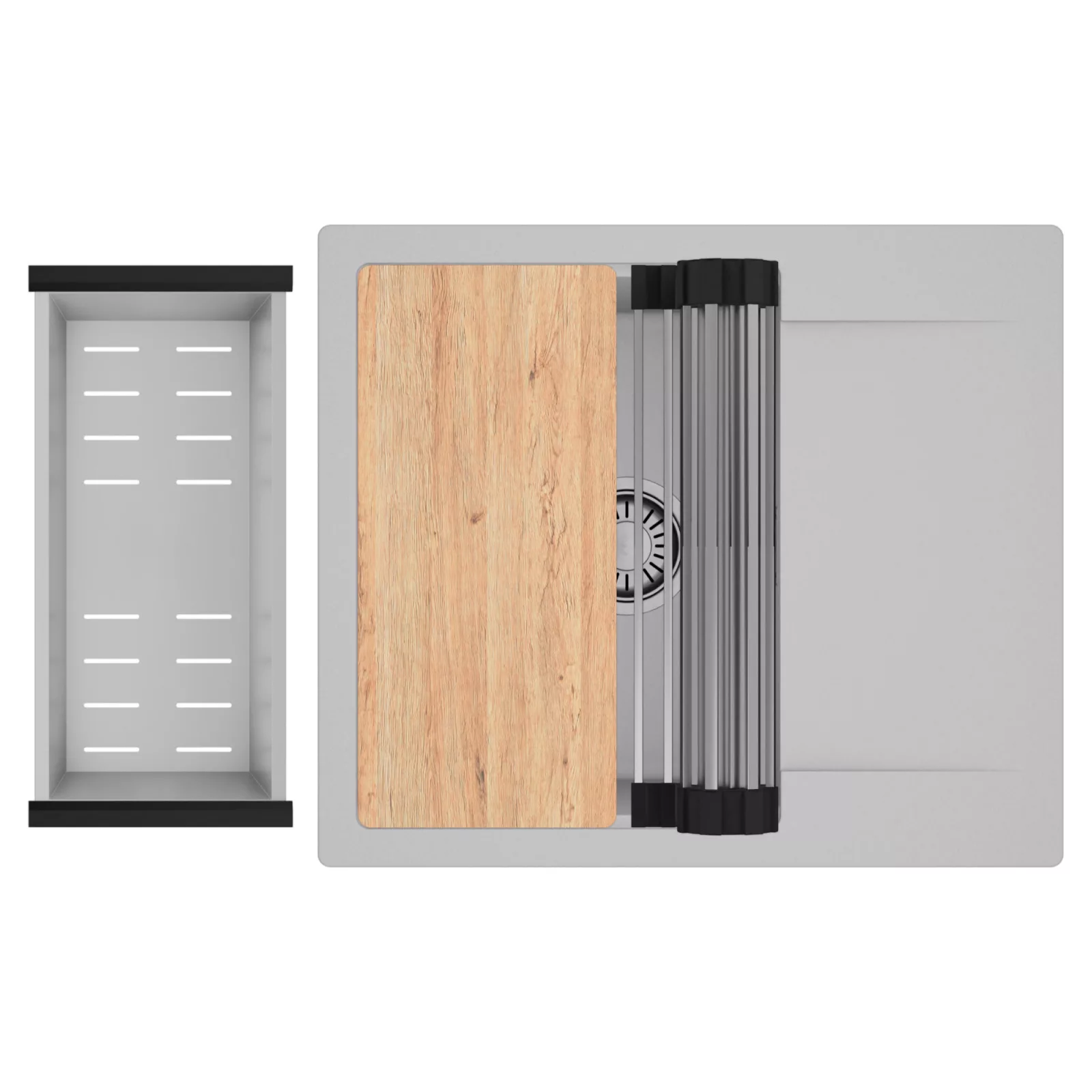 HD Onyx Grey 58 egymedencés mosogatótálca szett, vágódeszkával, csepegtetőráccsal és kosárral, alpesi szürke