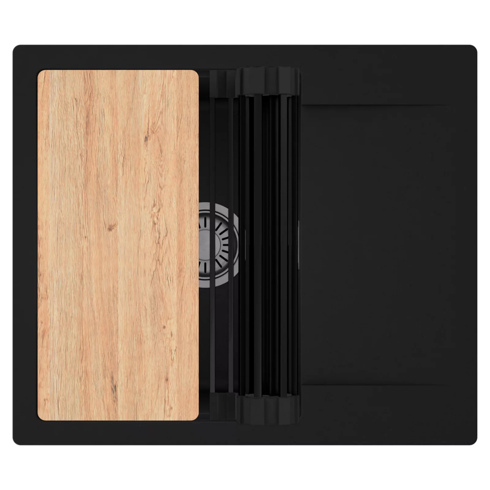 HD Onyx 58 egymedencés mosogatótálca szett, vágódeszkával és csepegtetőráccsal, matt fekete