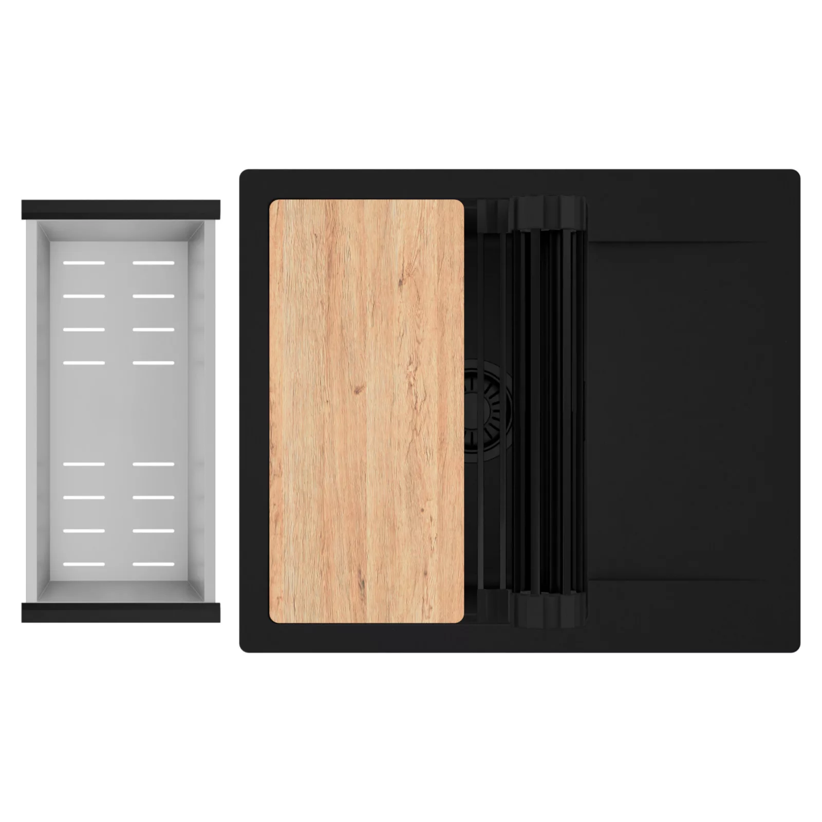 HD Onyx 58 egymedencés mosogatótálca szett, vágódeszkával, csepegtetőráccsal és kosárral, matt fekete