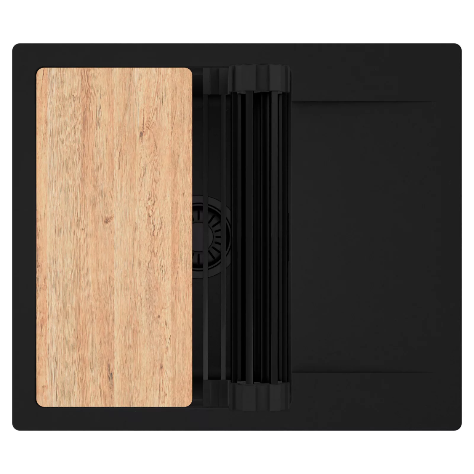 HD Onyx 58 egymedencés mosogatótálca szett, vágódeszkával és csepegtetőráccsal, matt fekete