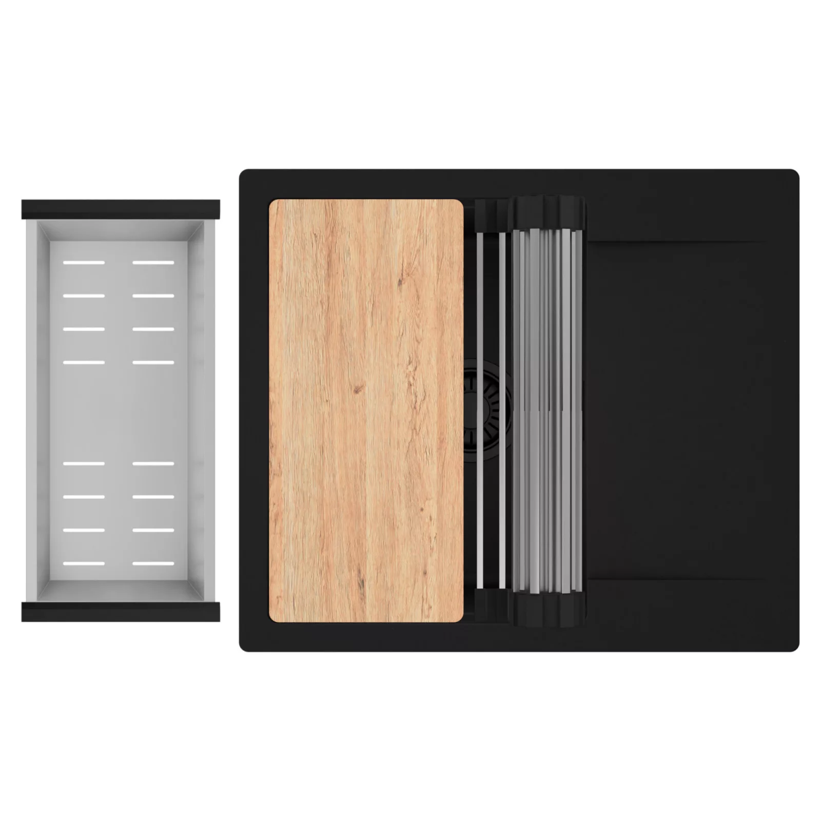 HD Onyx 58 egymedencés mosogatótálca szett, vágódeszkával, csepegtetőráccsal és kosárral, matt fekete