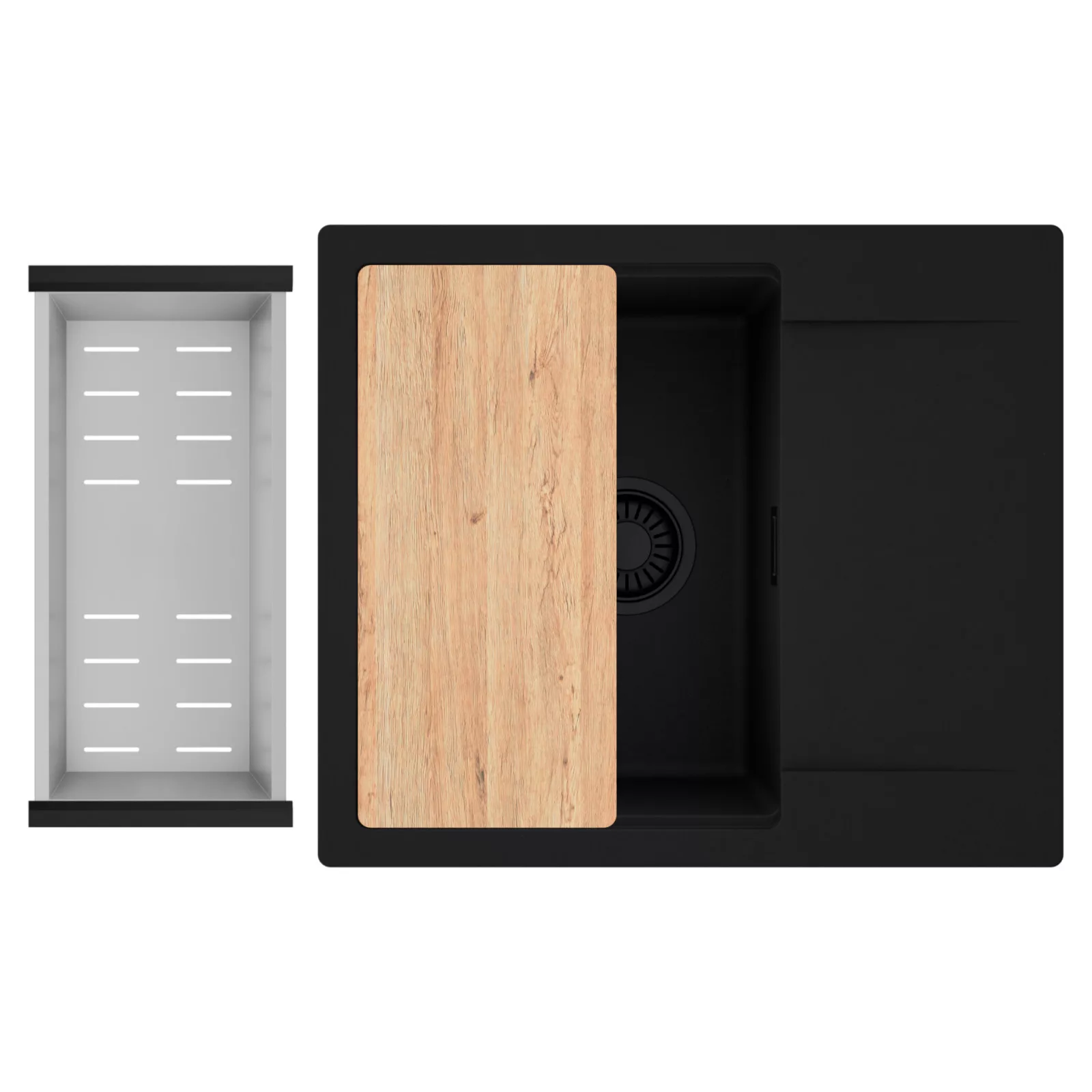 HD Onyx 58 egymedencés mosogatótálca szett, vágódeszkával és csepegtetőkosárral, matt fekete