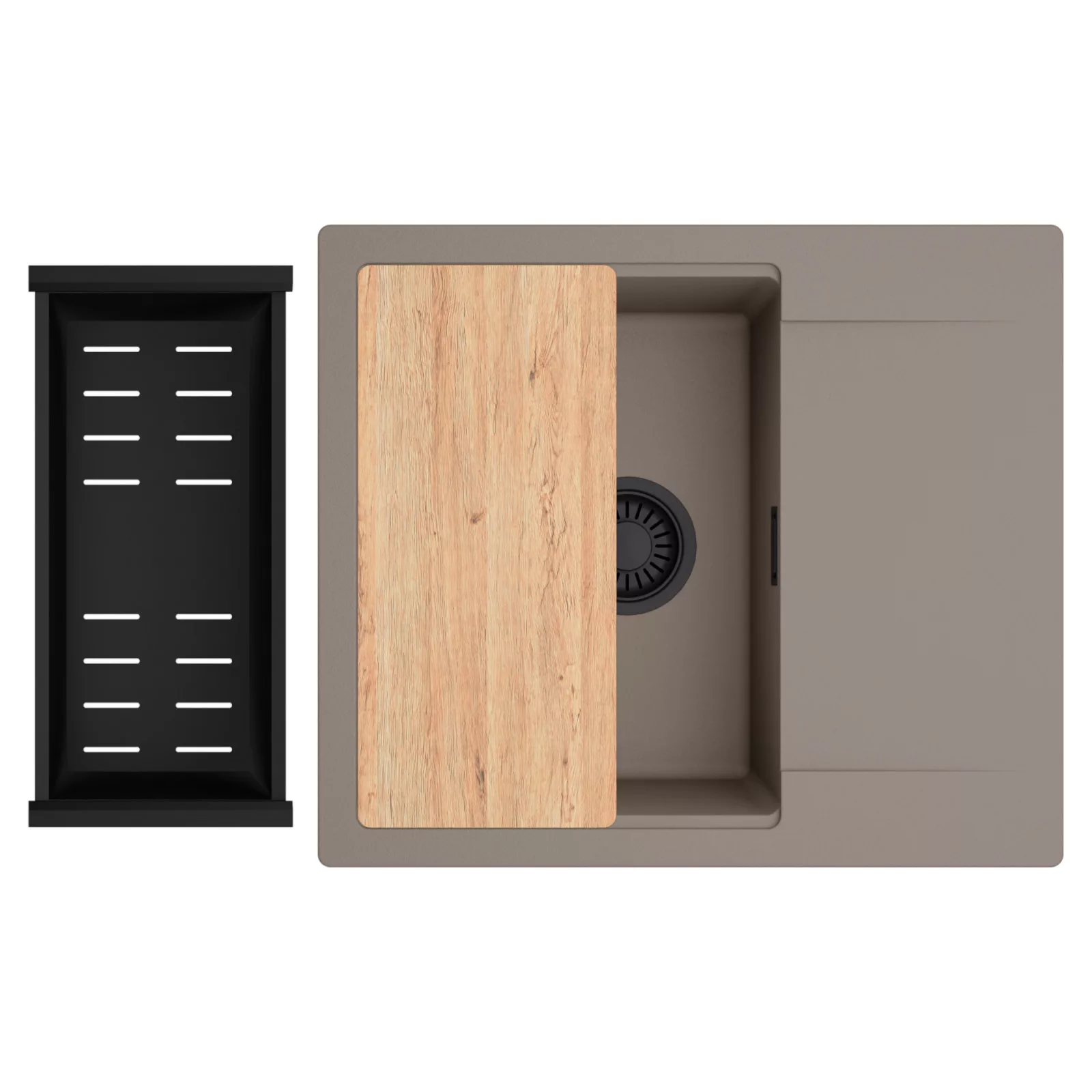 HD Onyx Tortora 58 egymedencés mosogatótálca szett, vágódeszkával és csepegtetőkosárral, tortora