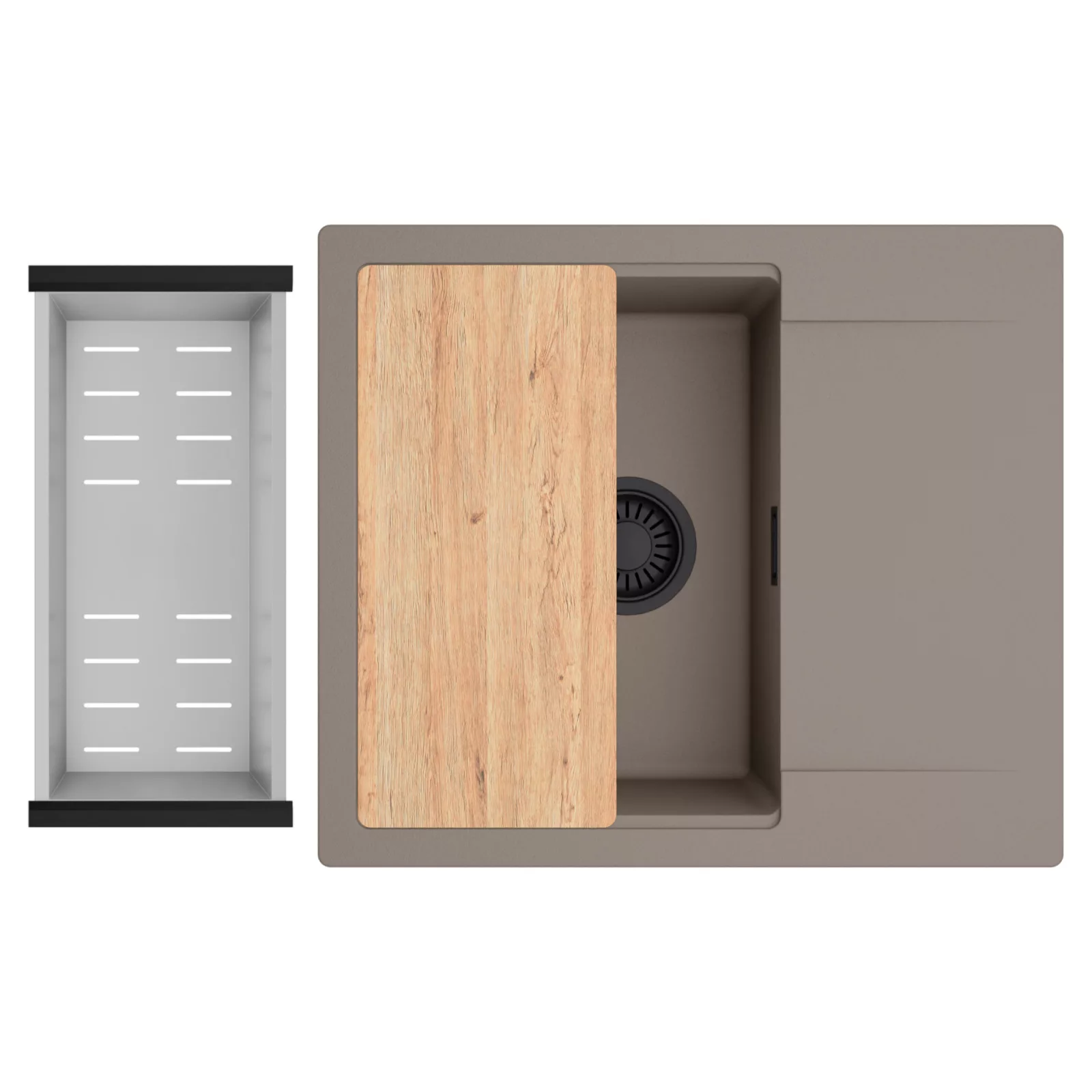 HD Onyx Tortora 58 egymedencés mosogatótálca szett, vágódeszkával és csepegtetőkosárral, tortora