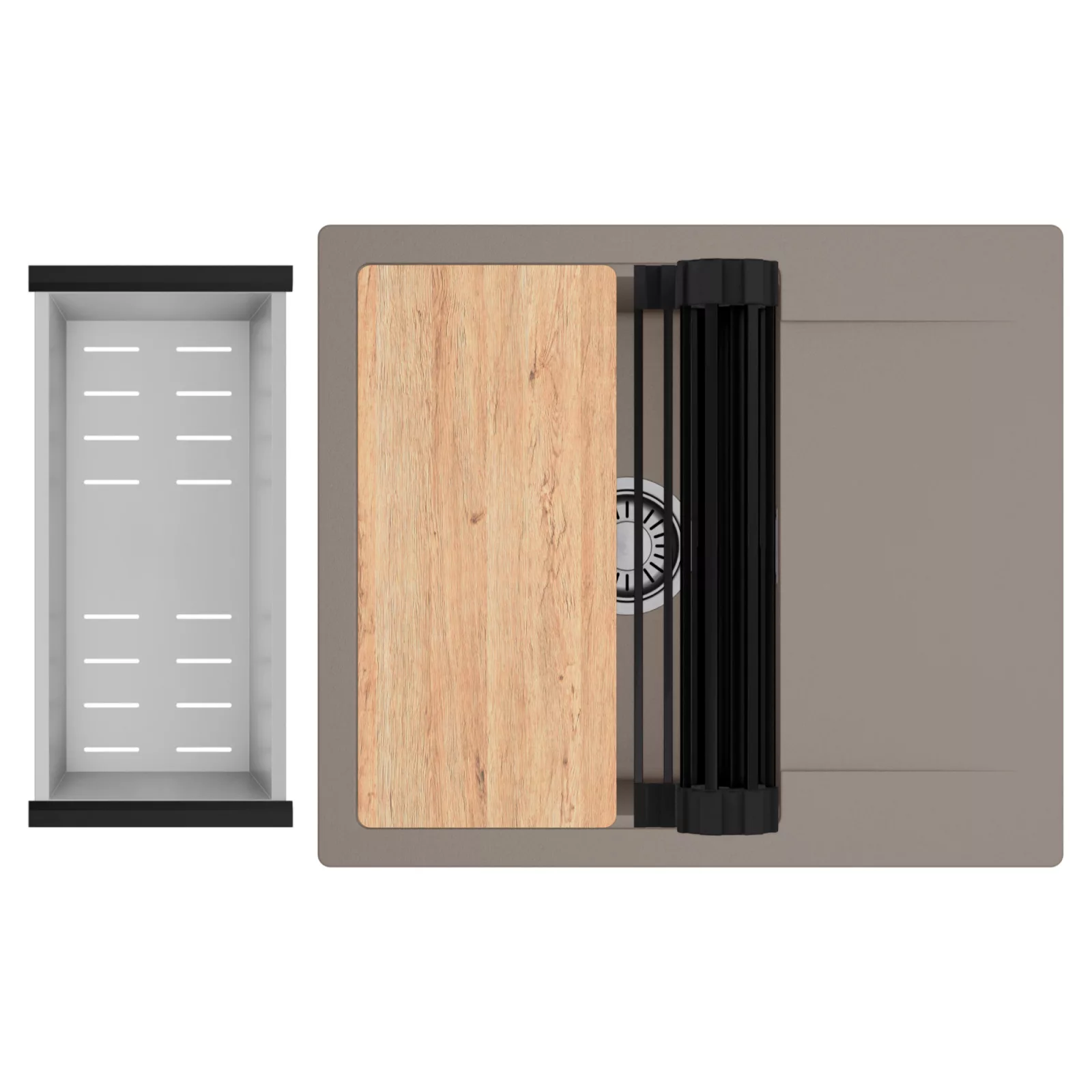 HD Onyx Tortora 58 egymedencés mosogatótálca szett, vágódeszkával, csepegtetőráccsal és kosárral, tortora