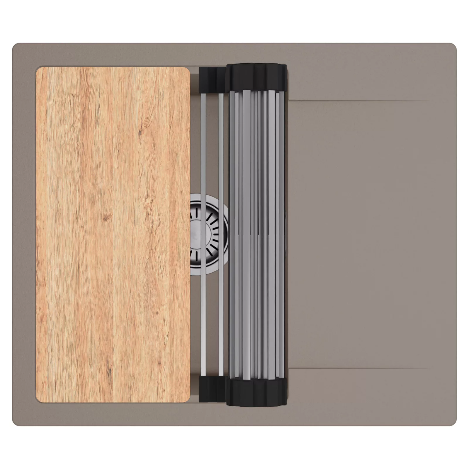 HD Onyx Tortora 58 egymedencés mosogatótálca szett, vágódeszkával és csepegtetőráccsal, tortora