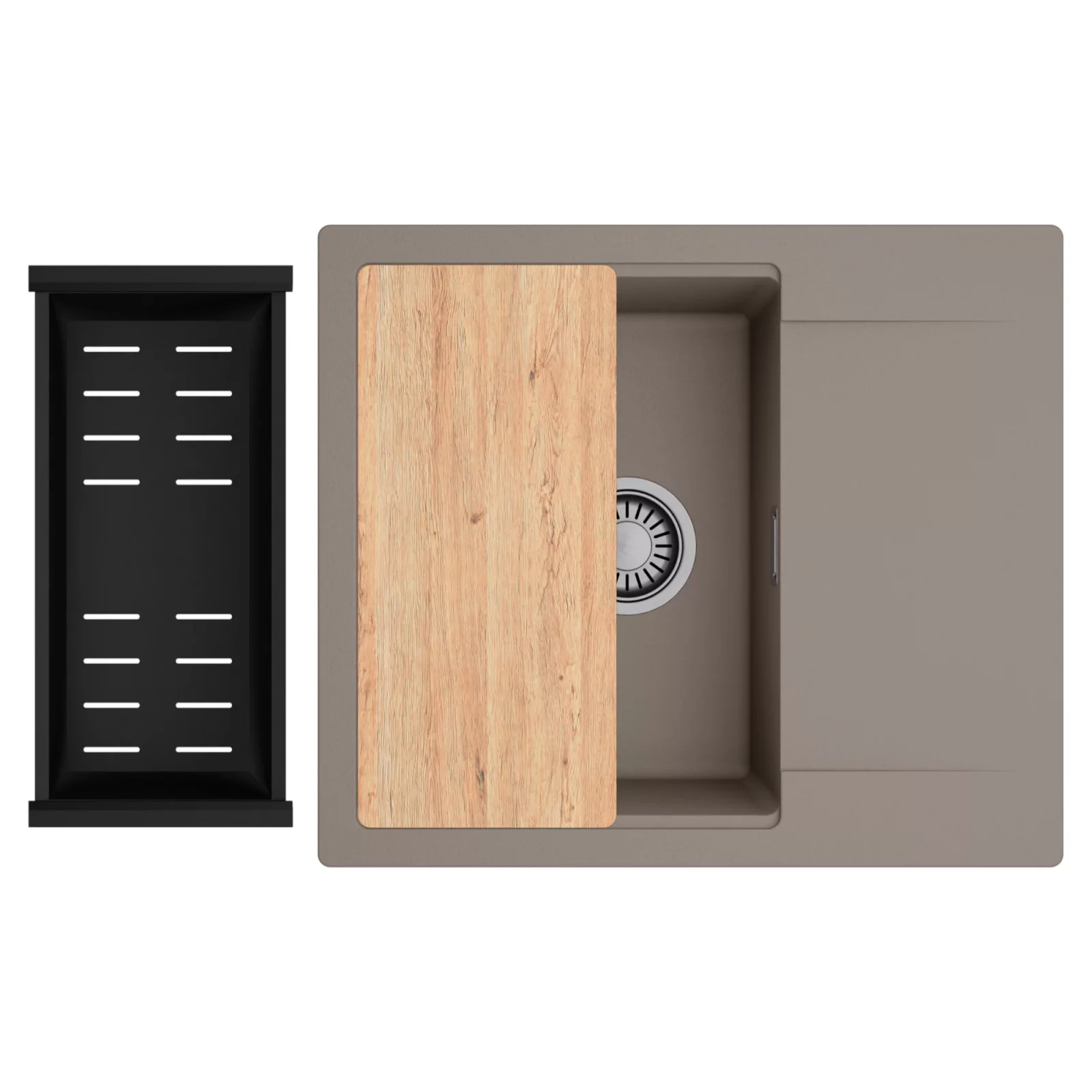 HD Onyx Tortora 58 egymedencés mosogatótálca szett, vágódeszkával és csepegtetőkosárral, tortora