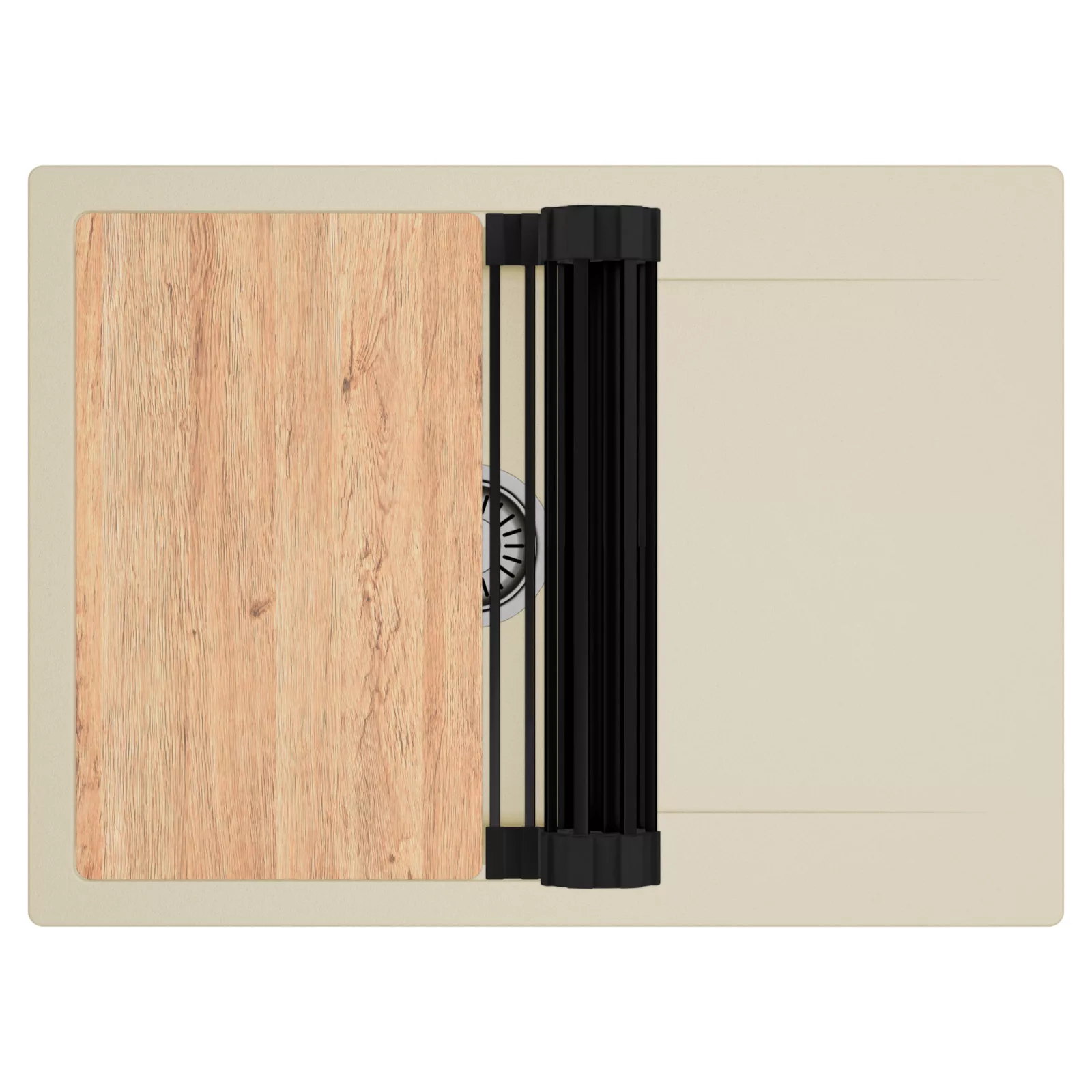 HD Onyx Beige 68-XL egymedencés mosogatótálca szett, vágódeszkával és csepegtetőráccsal, soft bézs