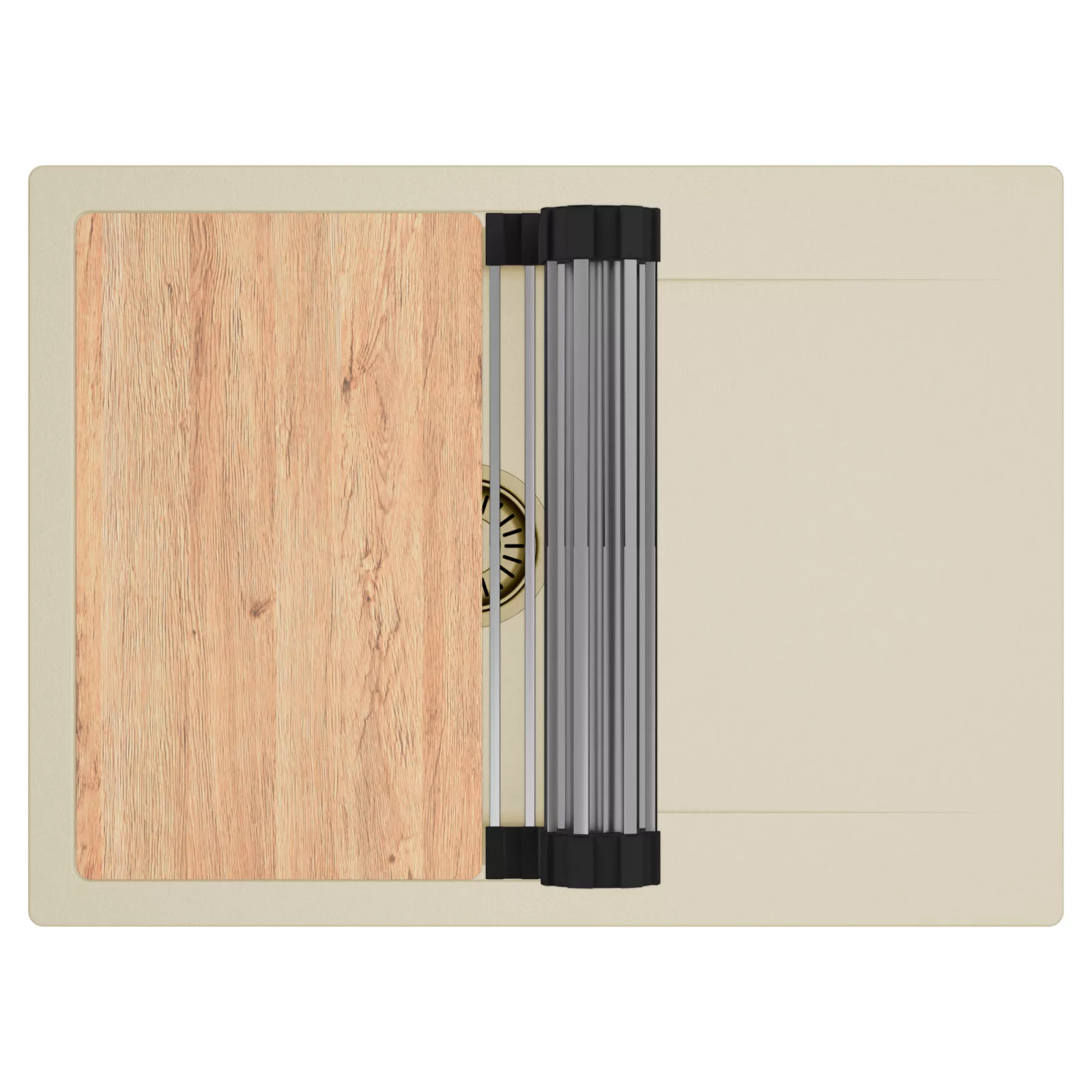 HD Onyx Beige 68-XL egymedencés mosogatótálca szett, vágódeszkával és csepegtetőráccsal, soft bézs