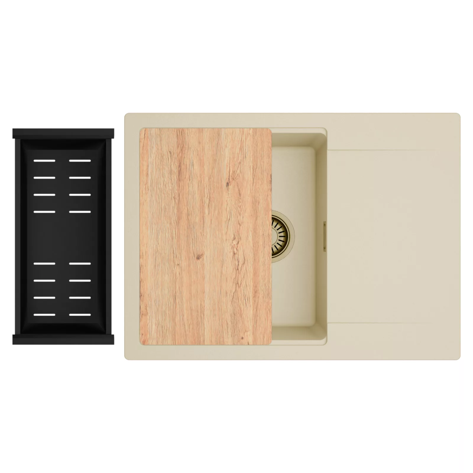 HD Onyx Beige 68-XL egymedencés mosogatótálca szett, vágódeszkával és csepegtetőkosárral, soft bézs