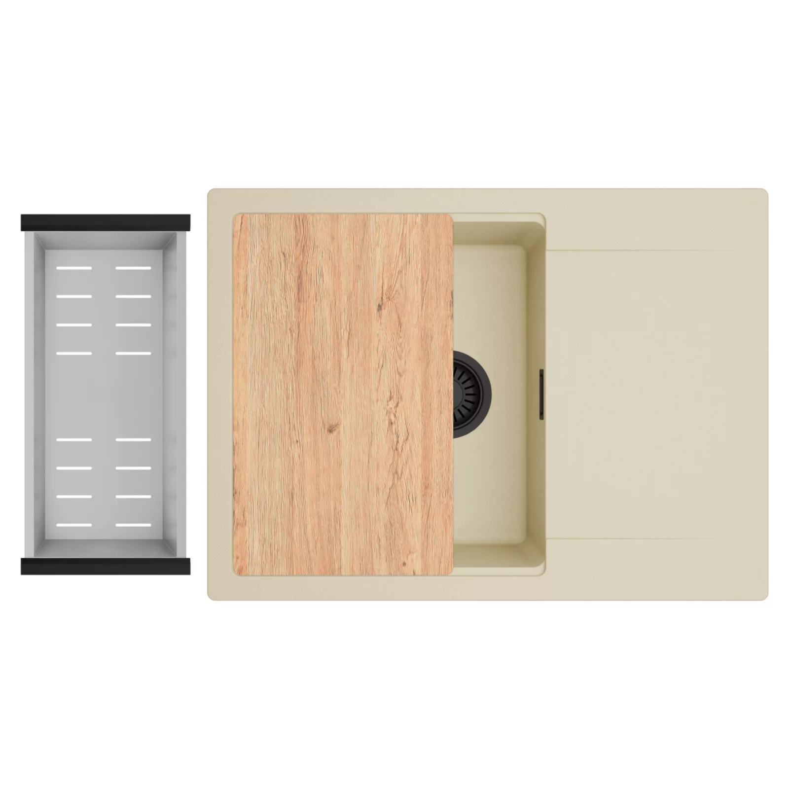 HD Onyx Beige 68-XL egymedencés mosogatótálca szett, vágódeszkával és csepegtetőkosárral, soft bézs