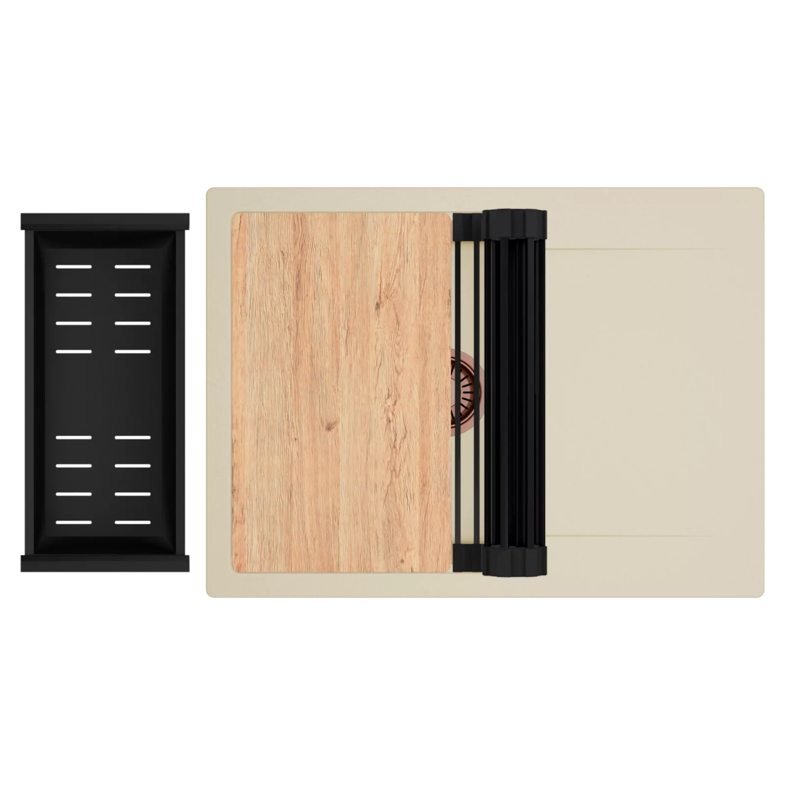 HD Onyx Beige 68-XL egymedencés mosogatótálca szett, vágódeszkával, csepegtetőráccsal és kosárral, soft bézs
