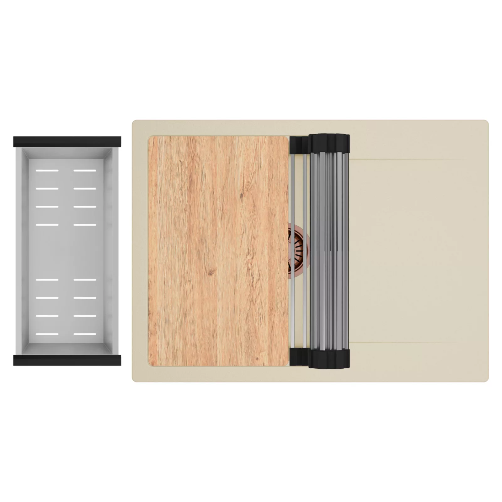 HD Onyx Beige 68-XL egymedencés mosogatótálca szett, vágódeszkával, csepegtetőráccsal és kosárral, soft bézs