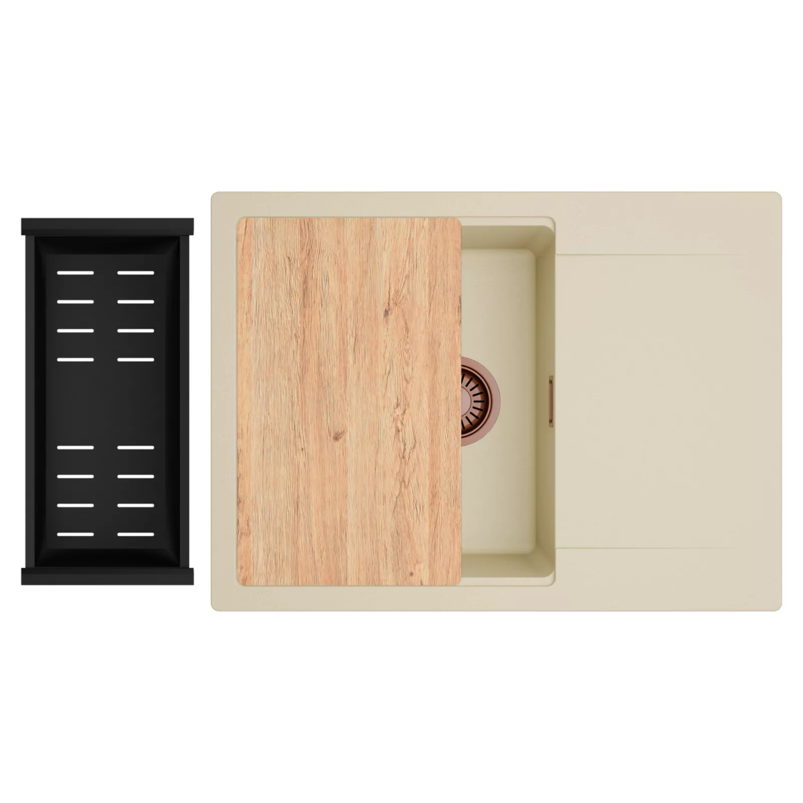 HD Onyx Beige 68-XL egymedencés mosogatótálca szett, vágódeszkával és csepegtetőkosárral, soft bézs