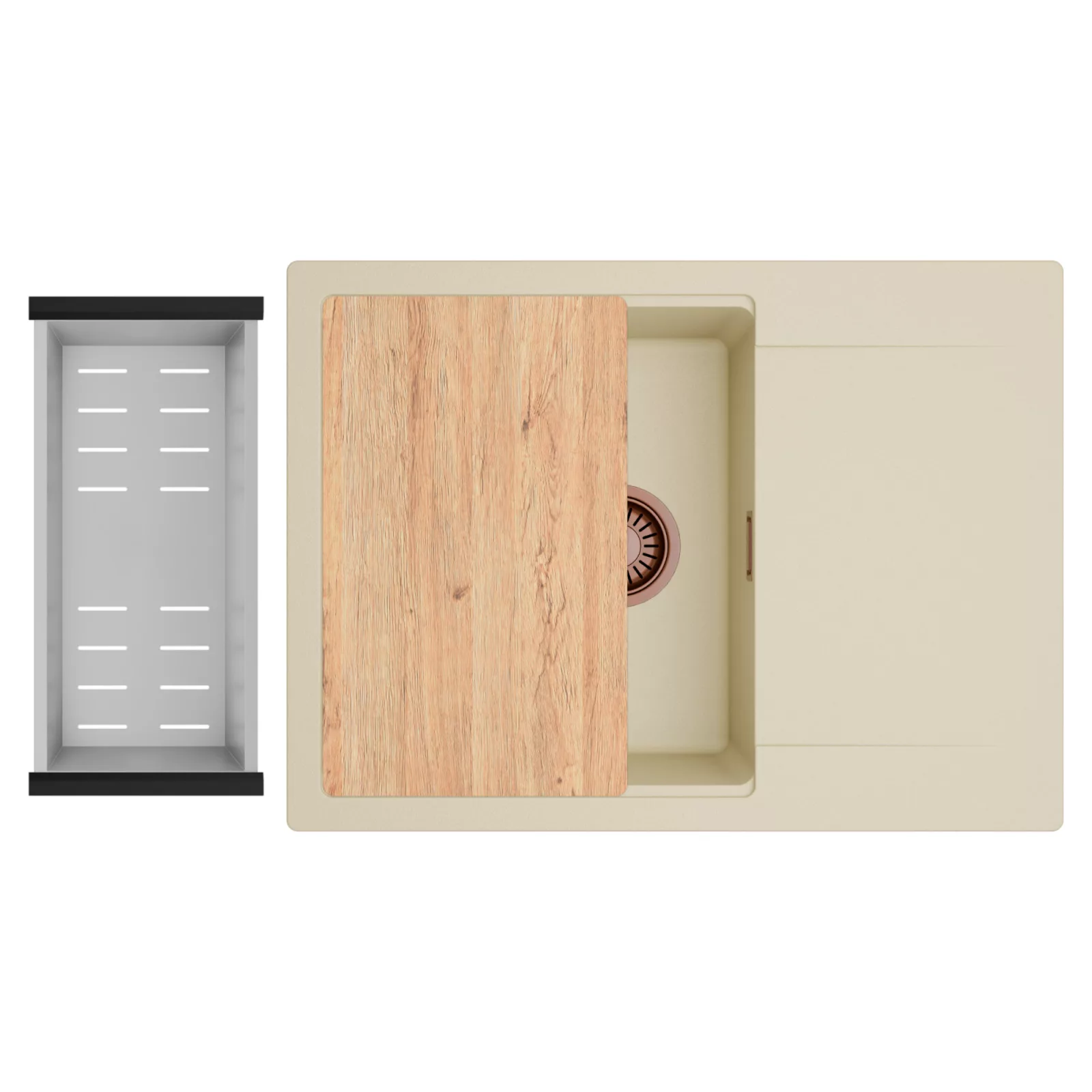 HD Onyx Beige 68-XL egymedencés mosogatótálca szett, vágódeszkával és csepegtetőkosárral, soft bézs