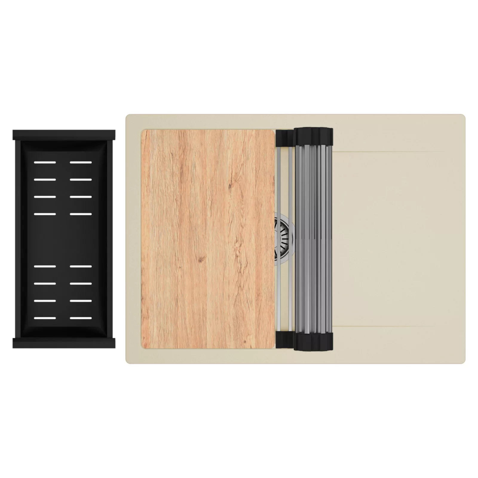 HD Onyx Beige 68-XL egymedencés mosogatótálca szett, vágódeszkával, csepegtetőráccsal és kosárral, soft bézs