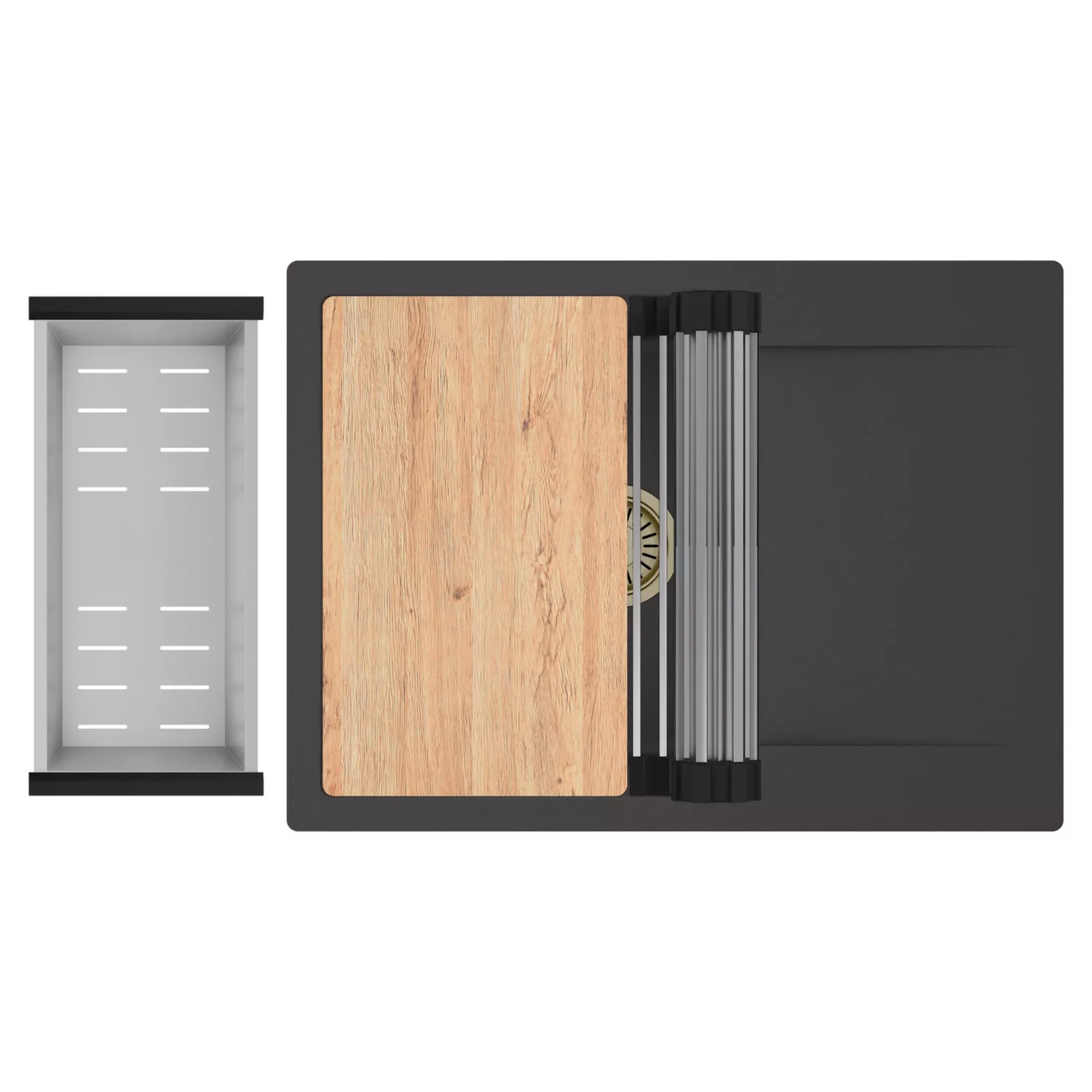 HD Onyx 68-XL egymedencés mosogatótálca szett, vágódeszkával, csepegtetőráccsal és kosárral, matt antracit