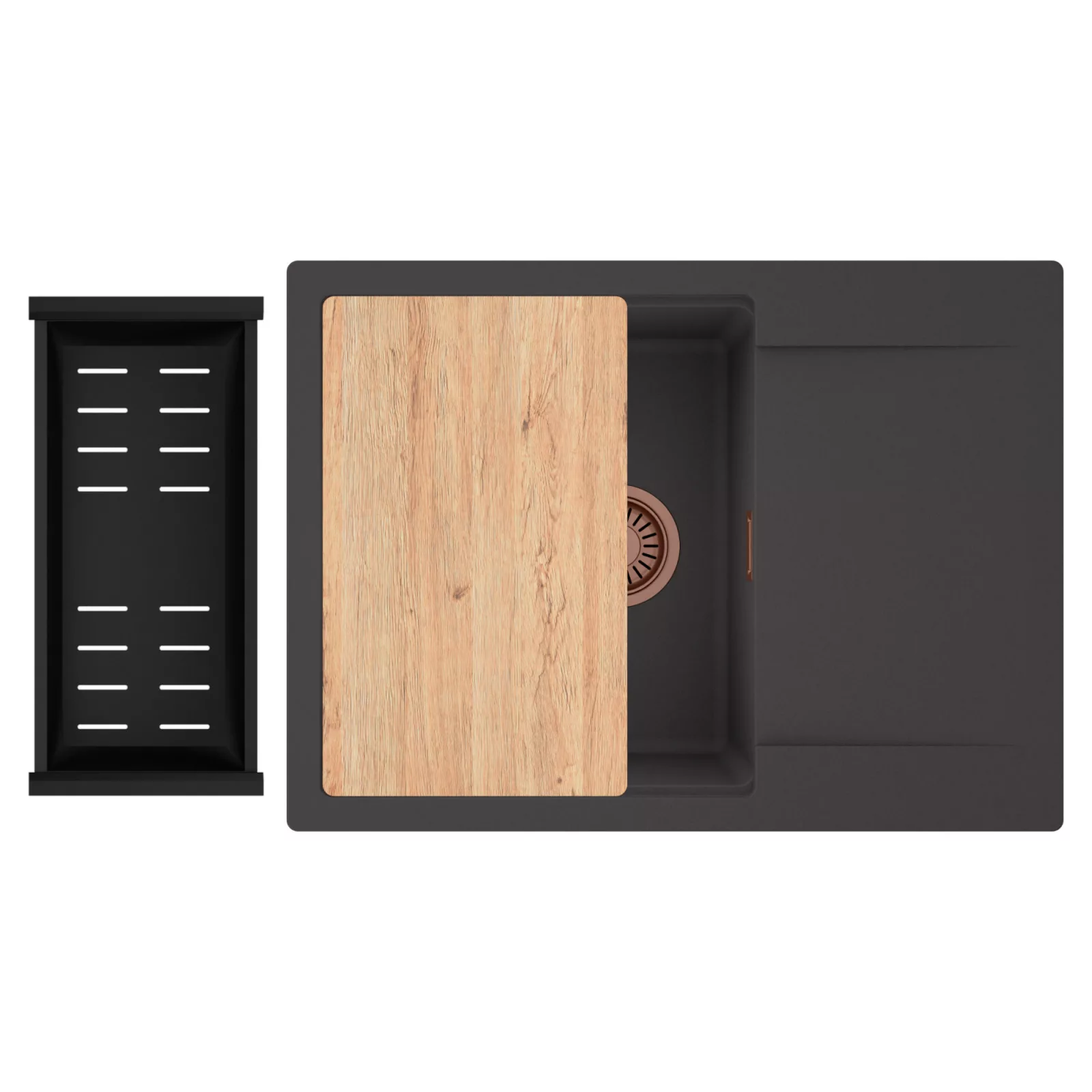 HD Onyx 68-XL egymedencés mosogatótálca szett, vágódeszkával és csepegtetőkosárral, matt antracit