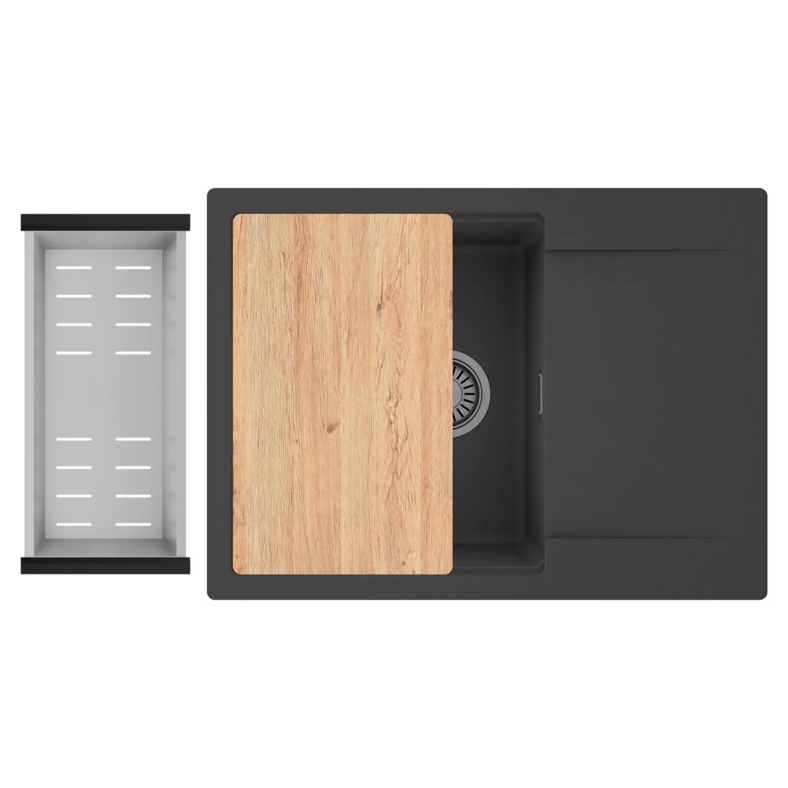 HD Onyx 68-XL egymedencés mosogatótálca szett, vágódeszkával és csepegtetőkosárral, matt antracit