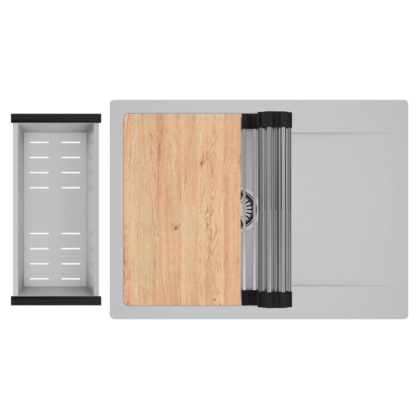 HD Onyx Grey 68-XL egymedencés mosogatótálca szett, vágódeszkával, csepegtetőráccsal és kosárral, alpesi szürke