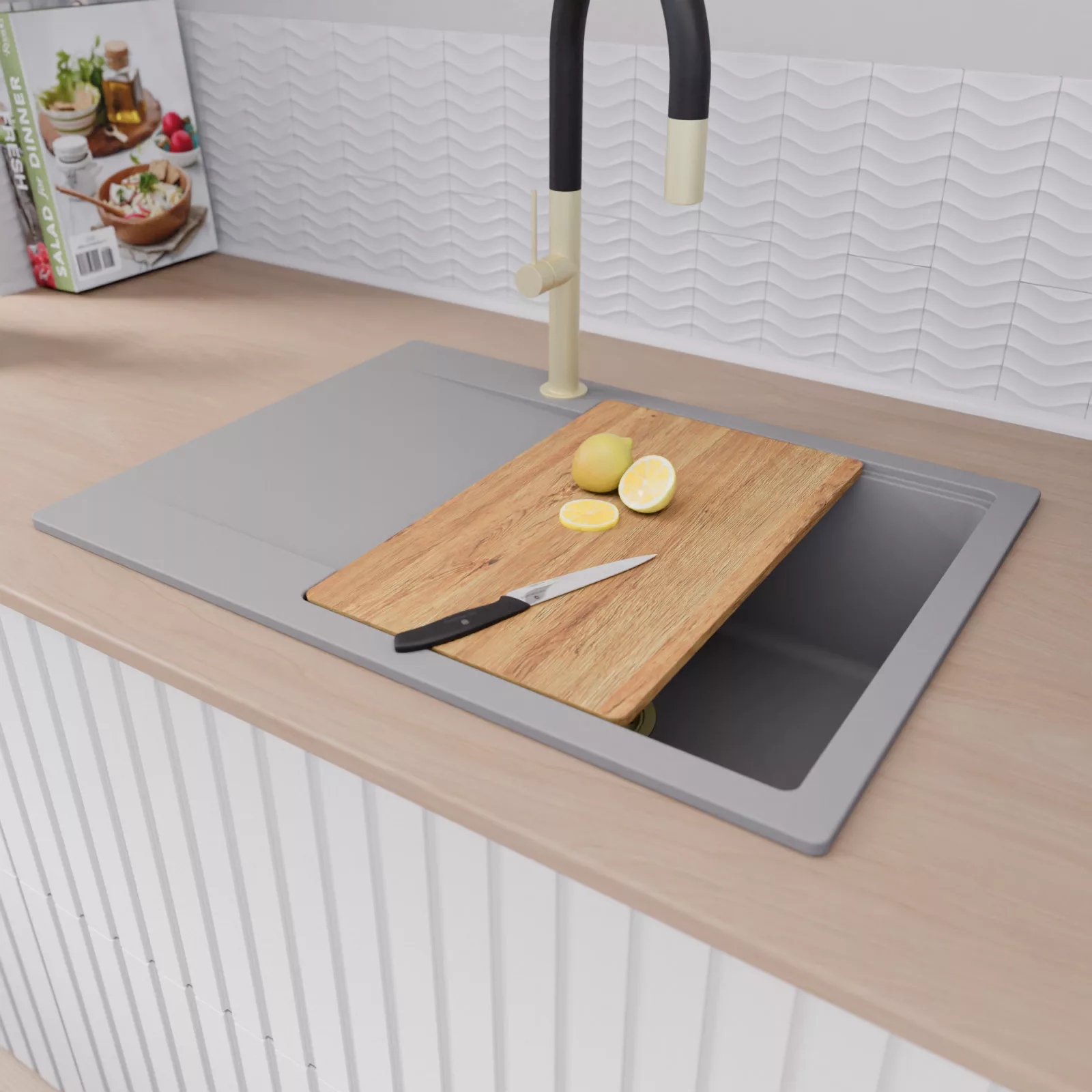 A mosogató prémium minőségű gránit kompozitból készült. Letisztult megjelenése mellett rendkívül praktikus, így bármilyen stílusú konyhába harmonikusan illeszkedik. A strapabíró gránit anyag hosszú távon is megbízható használatot garantál.