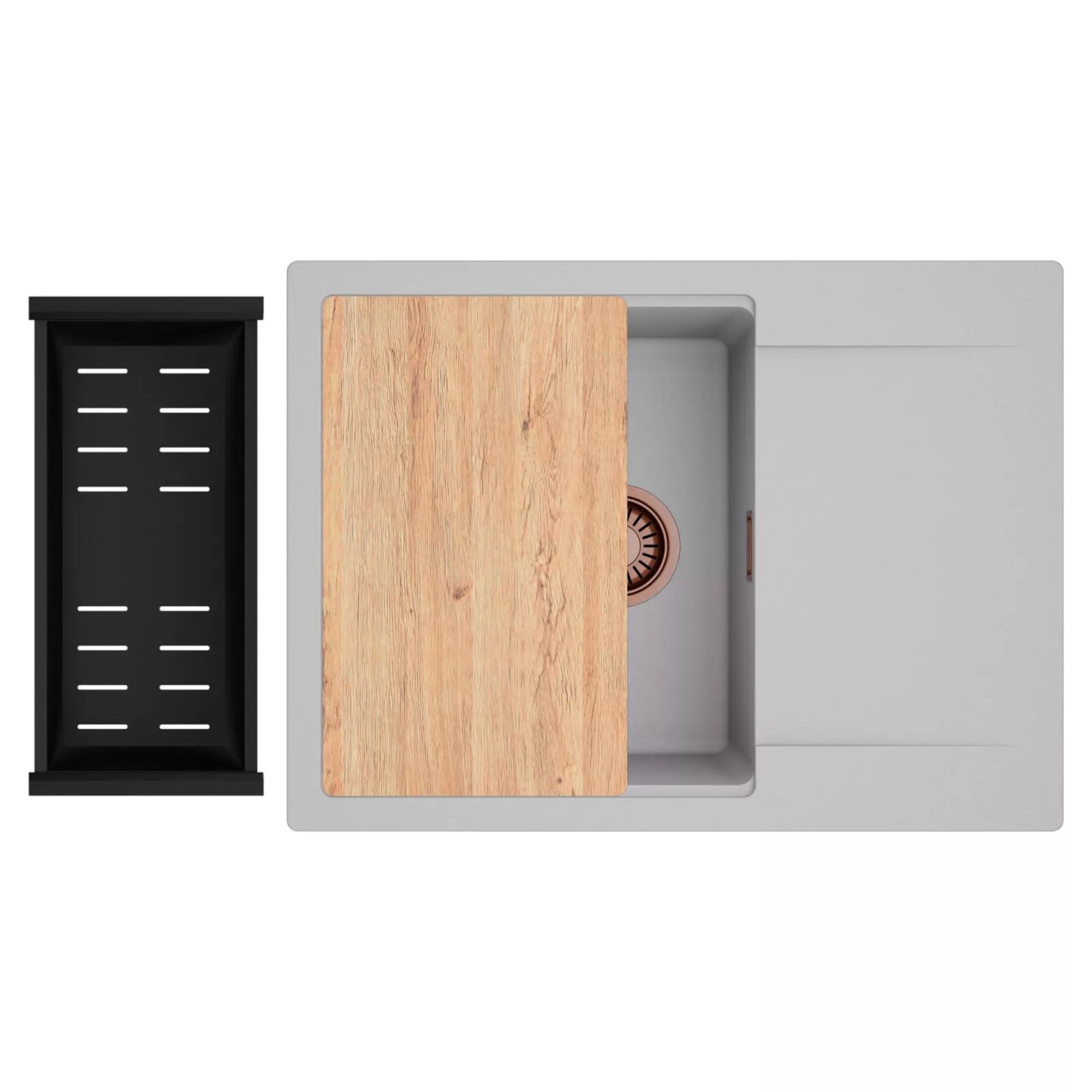 HD Onyx Grey 68-XL egymedencés mosogatótálca szett, vágódeszkával és csepegtetőkosárral, alpesi szürke