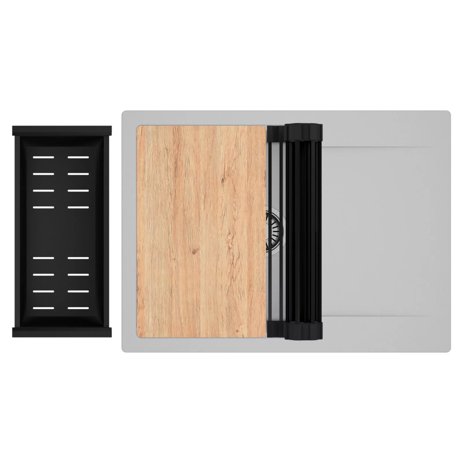 HD Onyx Grey 68-XL egymedencés mosogatótálca szett, vágódeszkával, csepegtetőráccsal és kosárral, alpesi szürke