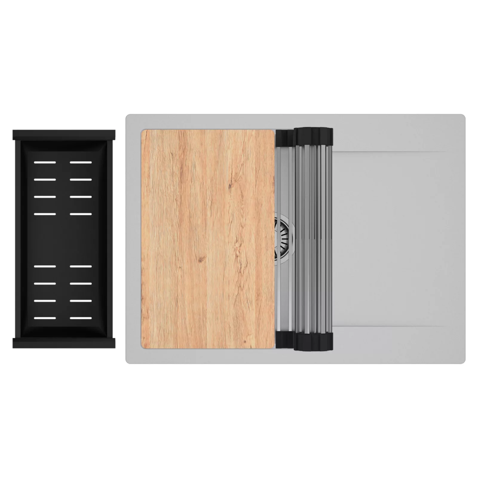 HD Onyx Grey 68-XL egymedencés mosogatótálca szett, vágódeszkával, csepegtetőráccsal és kosárral, alpesi szürke