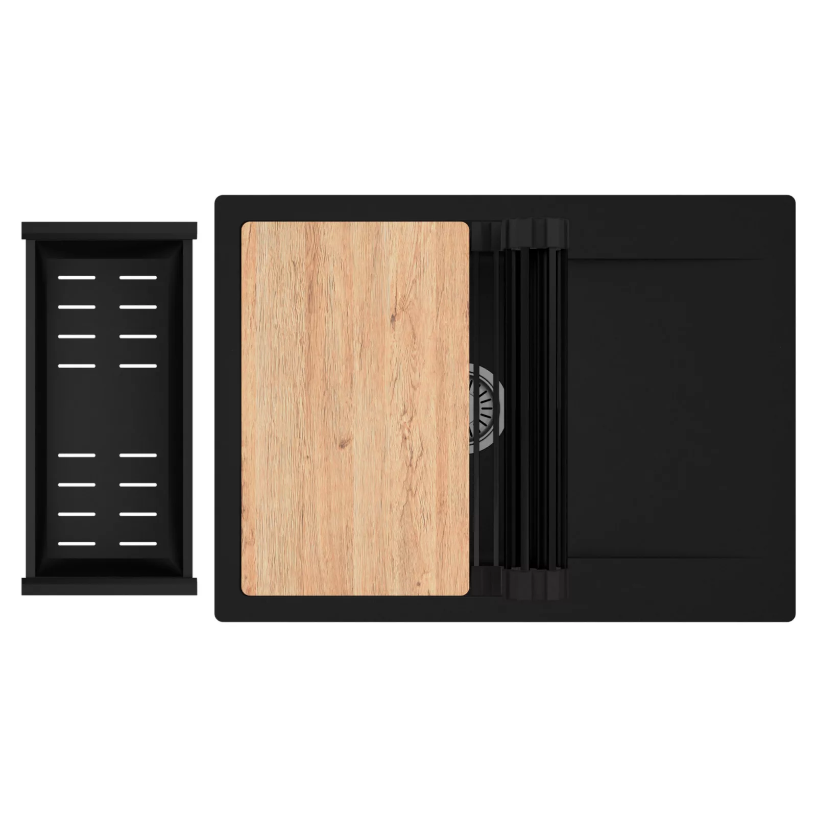 HD Onyx 68-XL egymedencés mosogatótálca szett, vágódeszkával, csepegtetőráccsal és kosárral, matt fekete