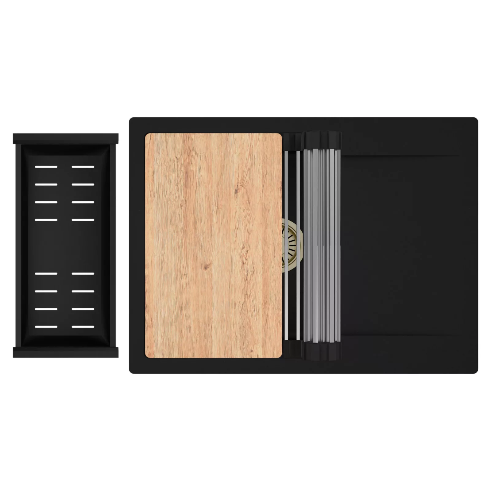 HD Onyx 68-XL egymedencés mosogatótálca szett, vágódeszkával, csepegtetőráccsal és kosárral, matt fekete