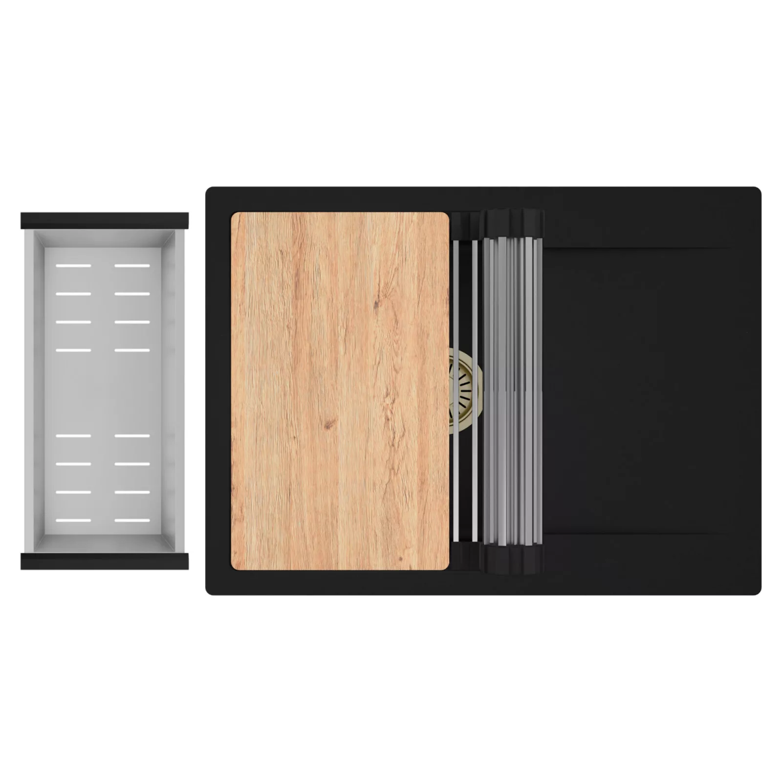 HD Onyx 68-XL egymedencés mosogatótálca szett, vágódeszkával, csepegtetőráccsal és kosárral, matt fekete