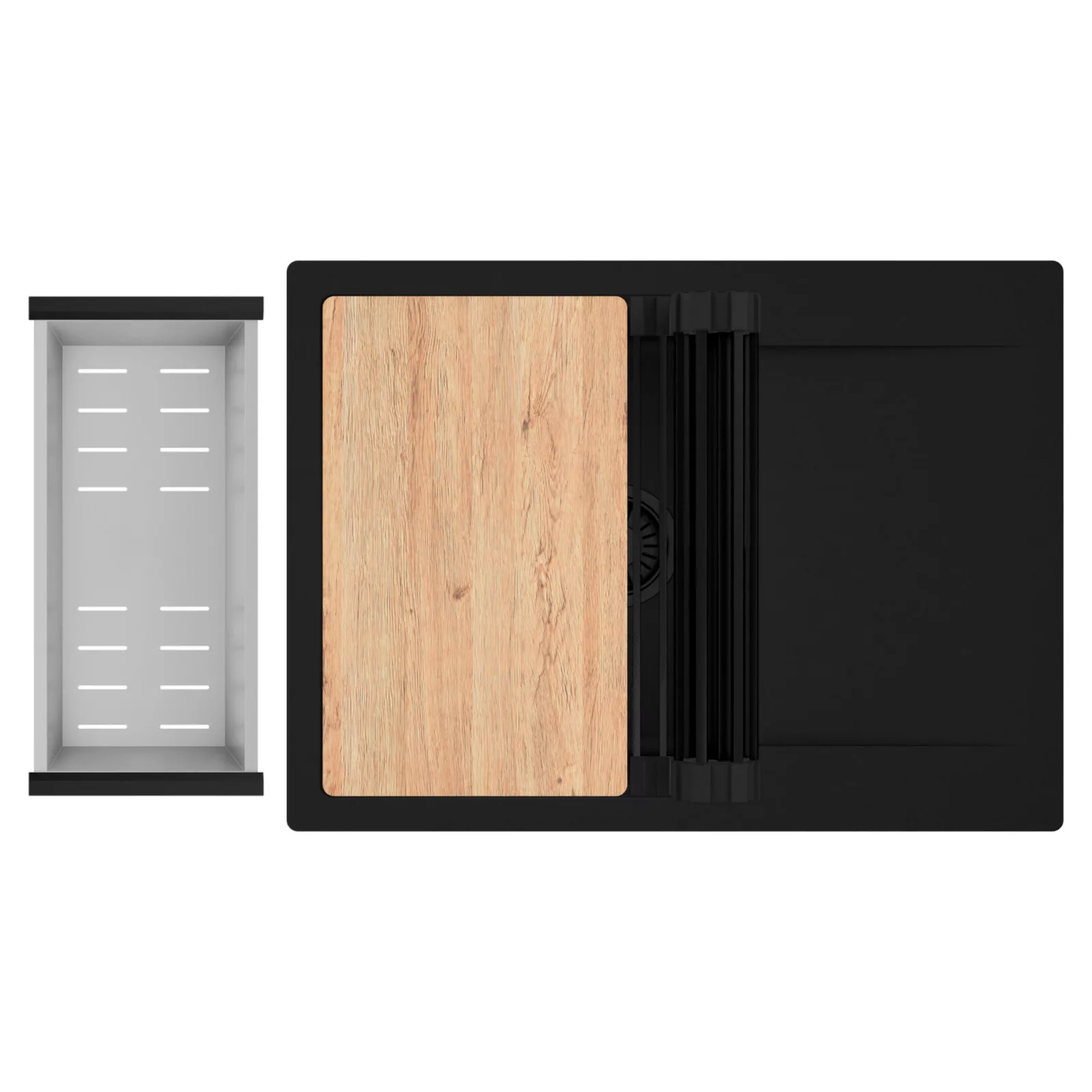 HD Onyx 68-XL egymedencés mosogatótálca szett, vágódeszkával, csepegtetőráccsal és kosárral, matt fekete