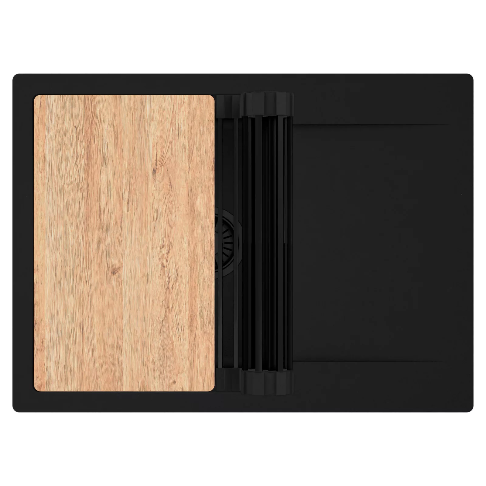 HD Onyx 68-XL egymedencés mosogatótálca szett, vágódeszkával és csepegtetőráccsal, matt fekete