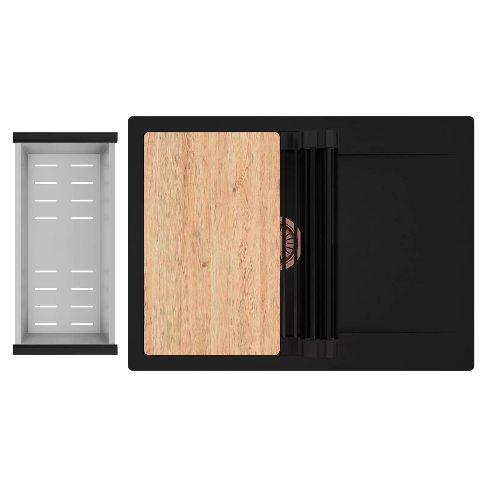 HD Onyx 68-XL egymedencés mosogatótálca szett, vágódeszkával, csepegtetőráccsal és kosárral, matt fekete