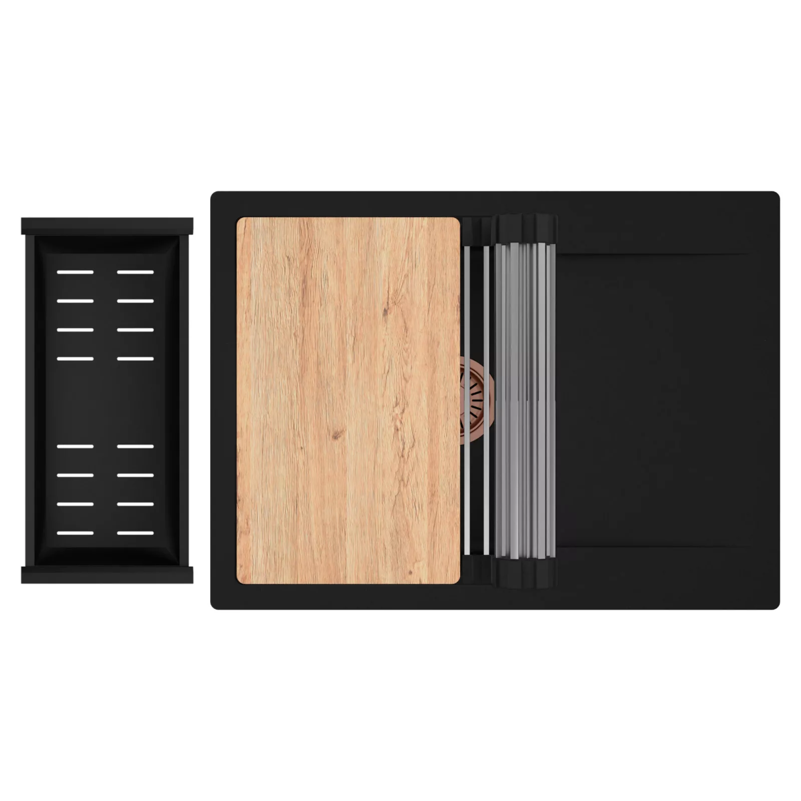 HD Onyx 68-XL egymedencés mosogatótálca szett, vágódeszkával, csepegtetőráccsal és kosárral, matt fekete