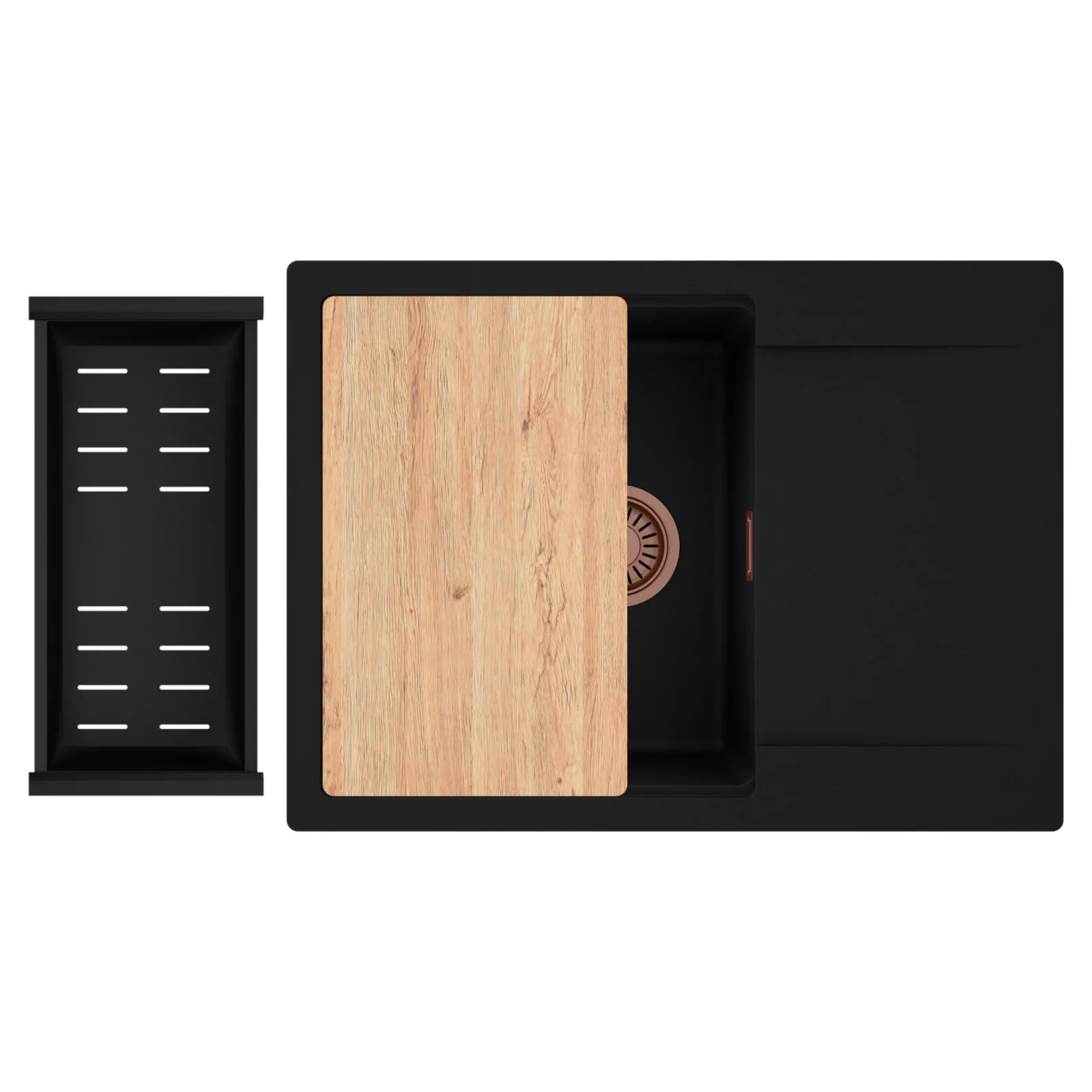 HD Onyx 68-XL egymedencés mosogatótálca szett, vágódeszkával és csepegtetőkosárral, matt fekete