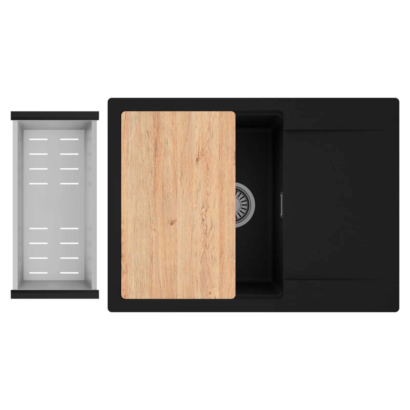 HD Onyx 68-XL egymedencés mosogatótálca szett, vágódeszkával és csepegtetőkosárral, matt fekete