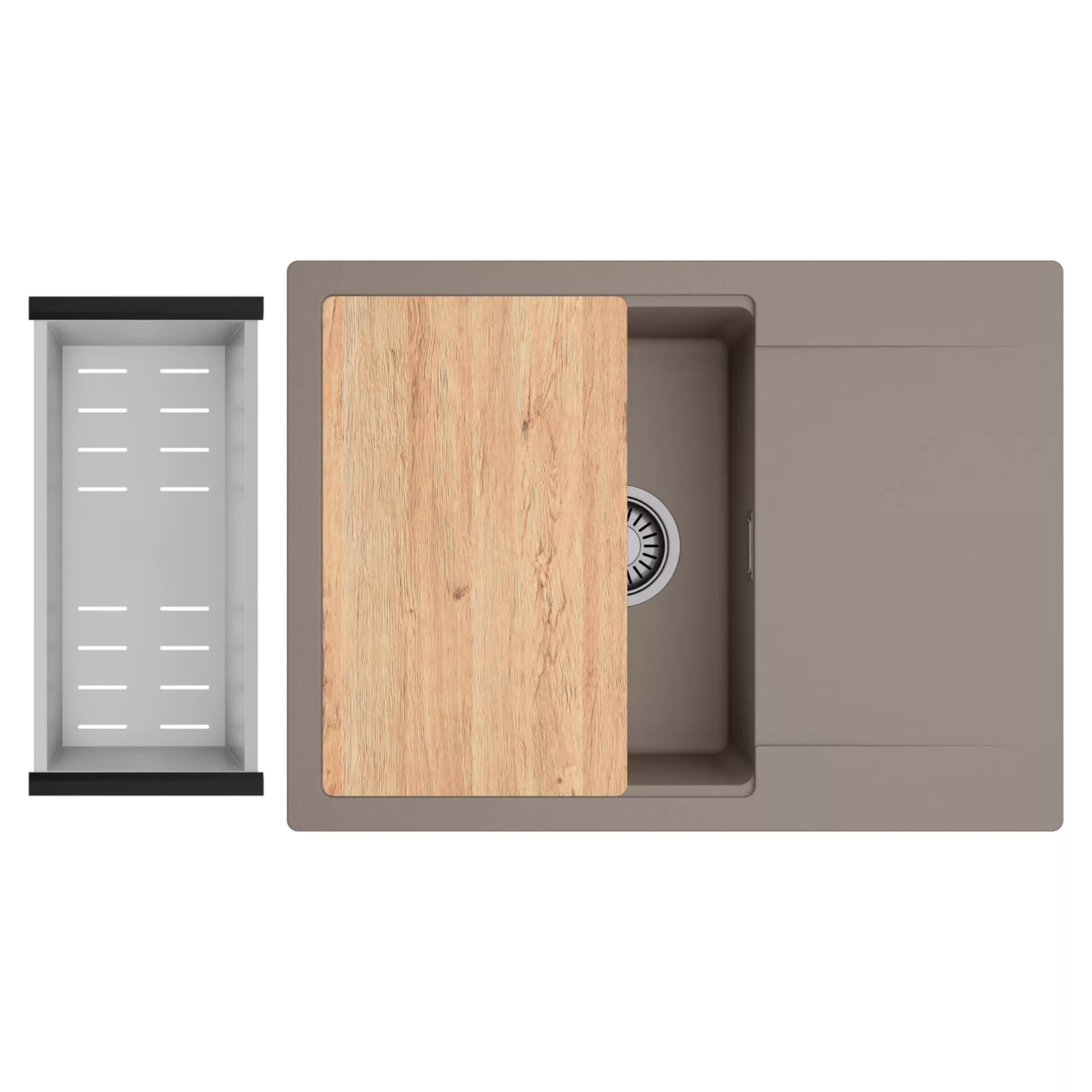 HD Onyx Tortora 68-XL egymedencés mosogatótálca szett, vágódeszkával és csepegtetőkosárral, tortora