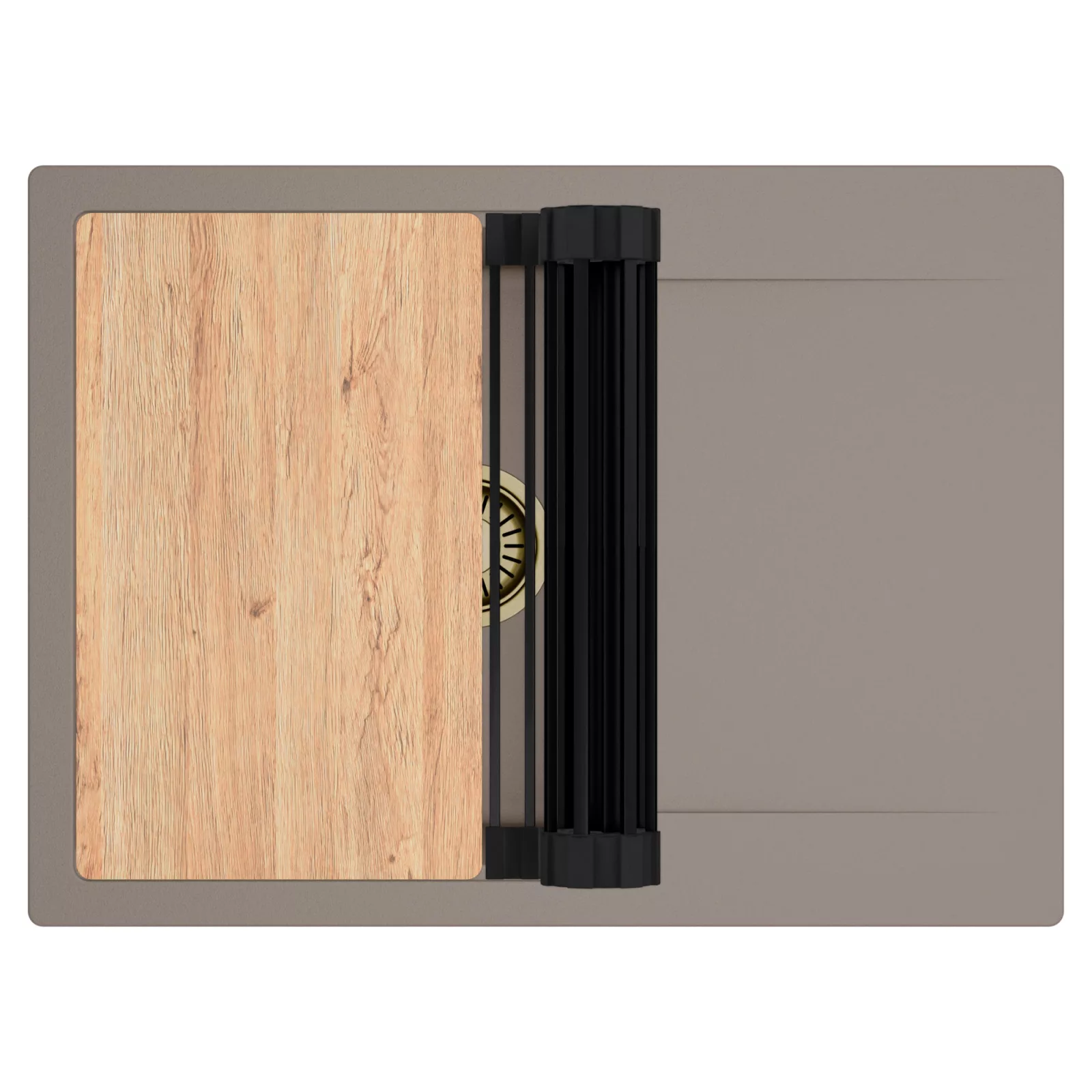 HD Onyx Tortora 68-XL egymedencés mosogatótálca szett, vágódeszkával és csepegtetőráccsal, tortora