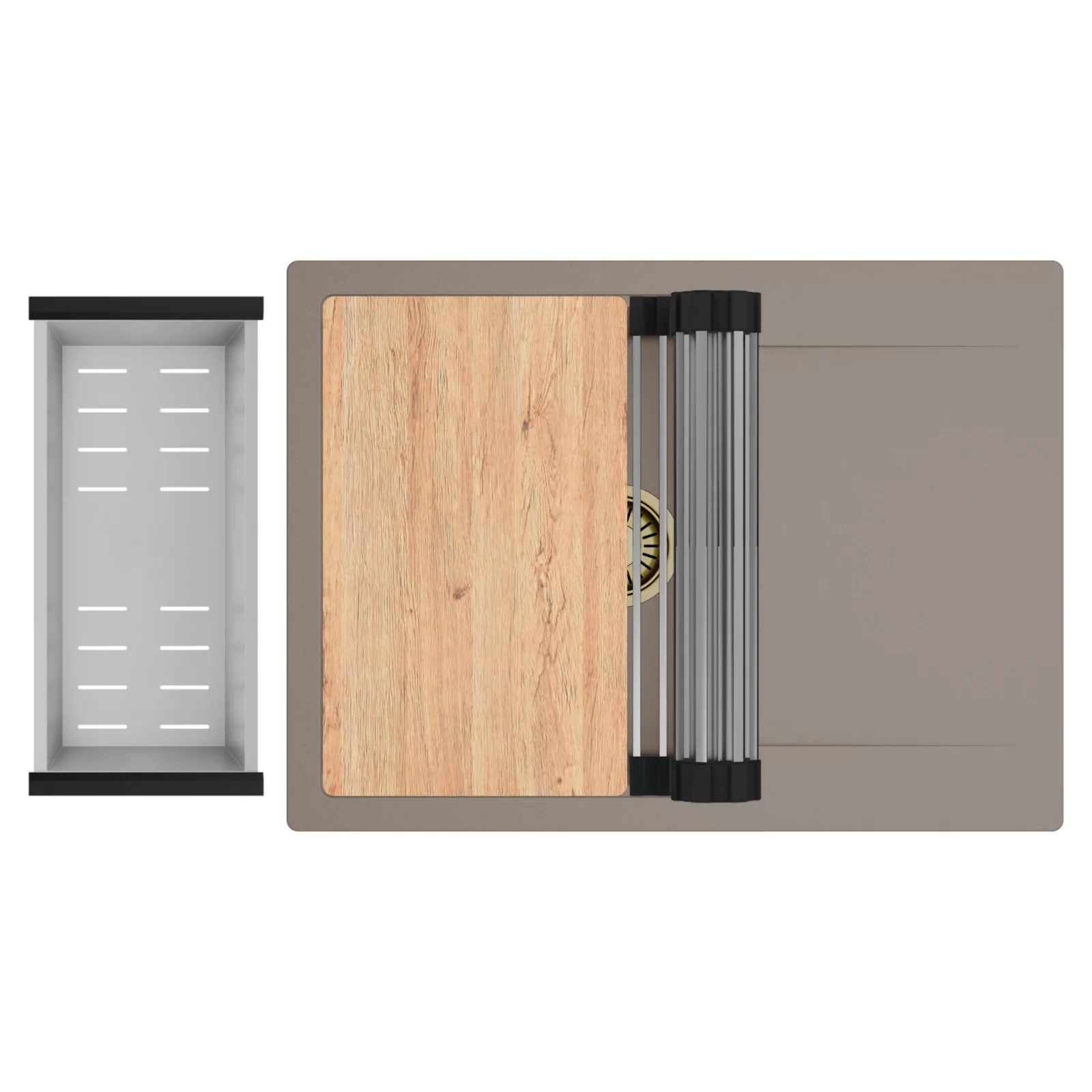 HD Onyx Tortora 68-XL egymedencés mosogatótálca szett, vágódeszkával, csepegtetőráccsal és kosárral, tortora